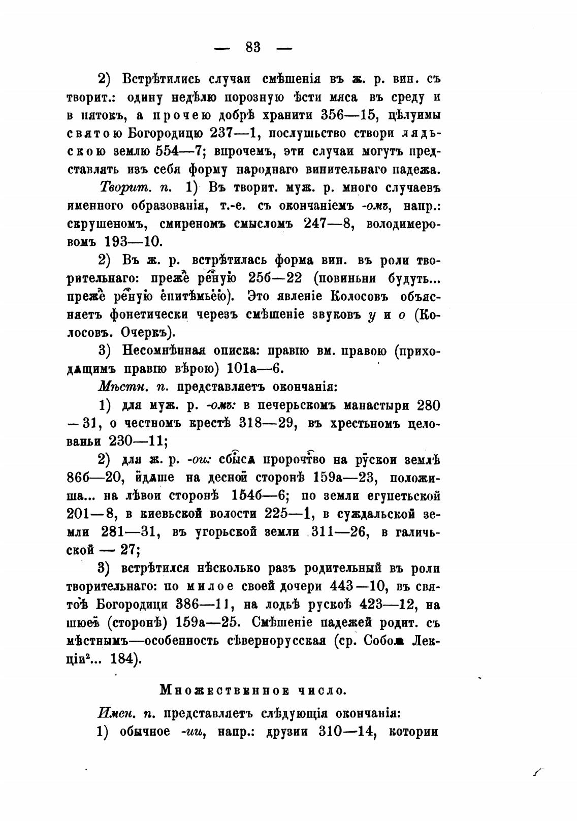 1) обычное -ии, напр.: друзии 310—14, котории