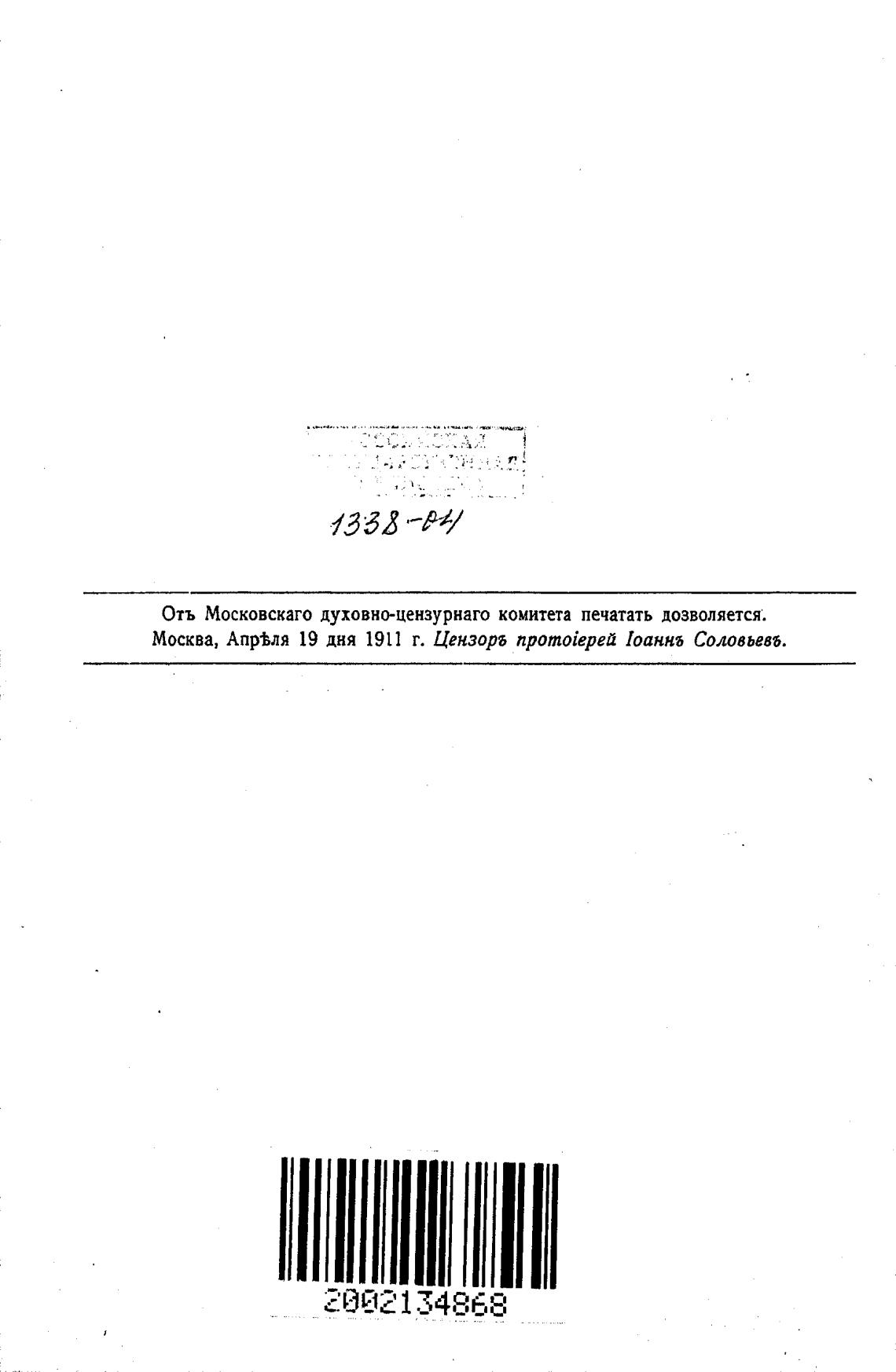 Москва, Апр±ля 19 дня 1911 г. Цензорб npomoiepea IoaHH6 Соловьевб.