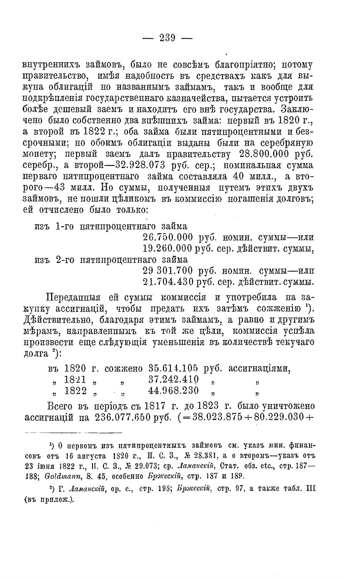 а второй въ 1822 г.; оба займа были пятипроцентными и без-