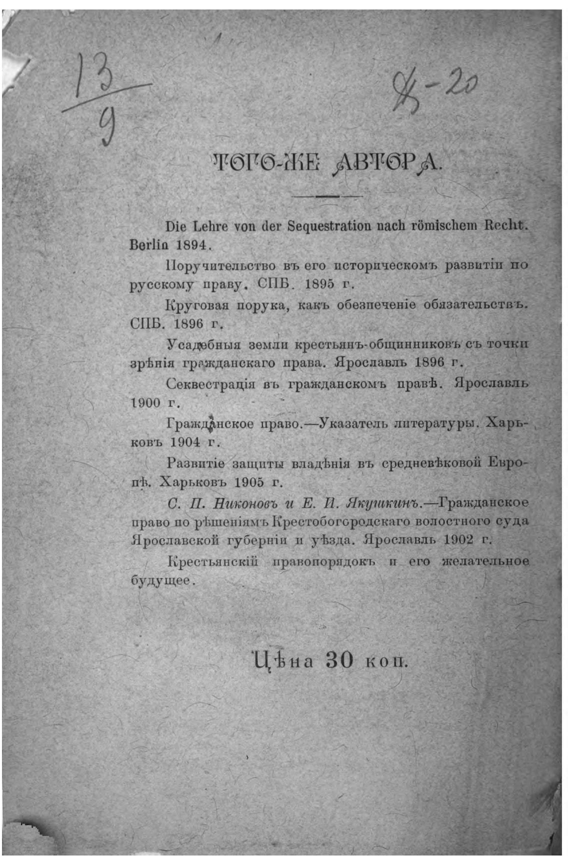 русскому праву. СПБ. 1895 г.