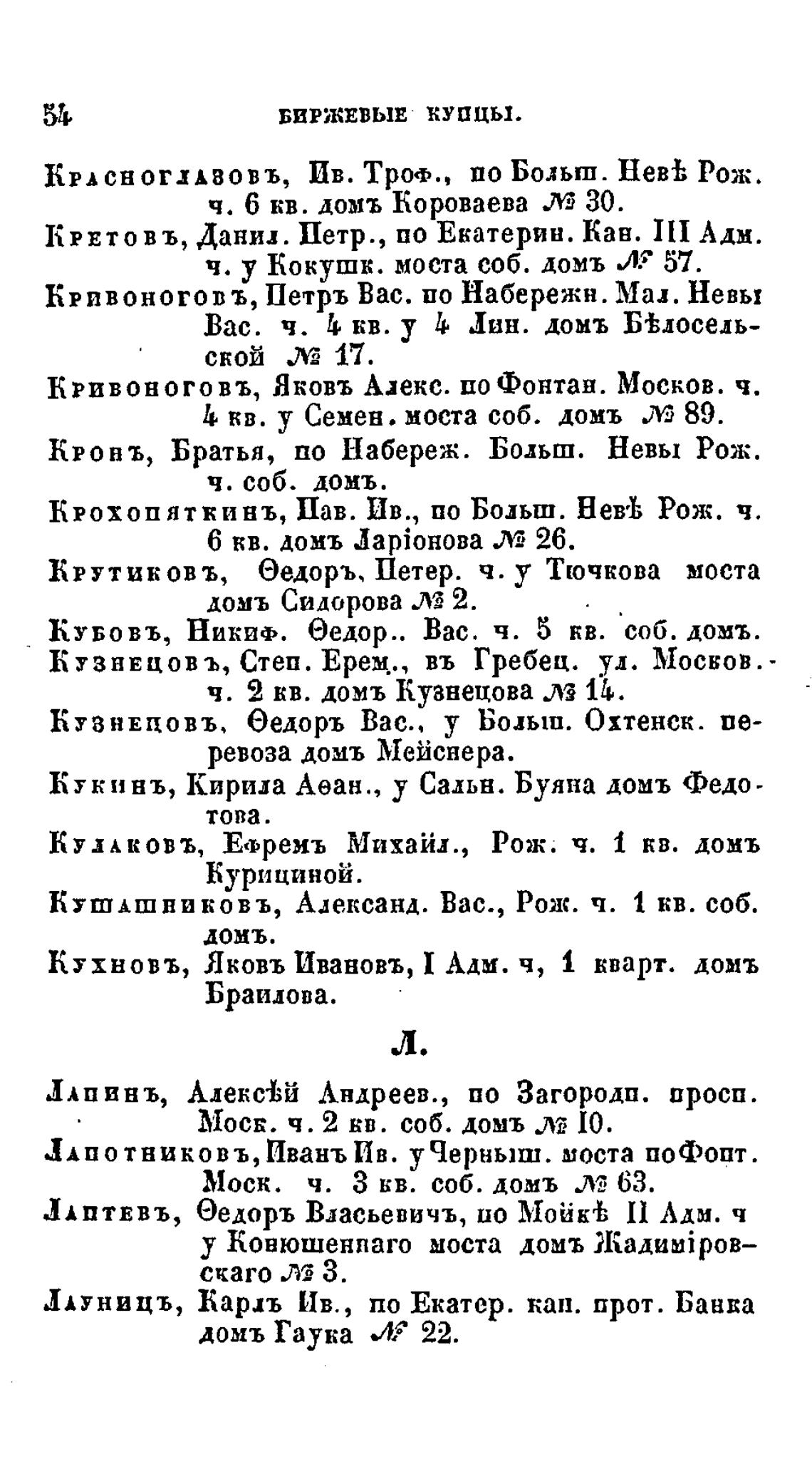 Кривоногов ъ, Петръ Вас. по Набережн. Мал. Невы