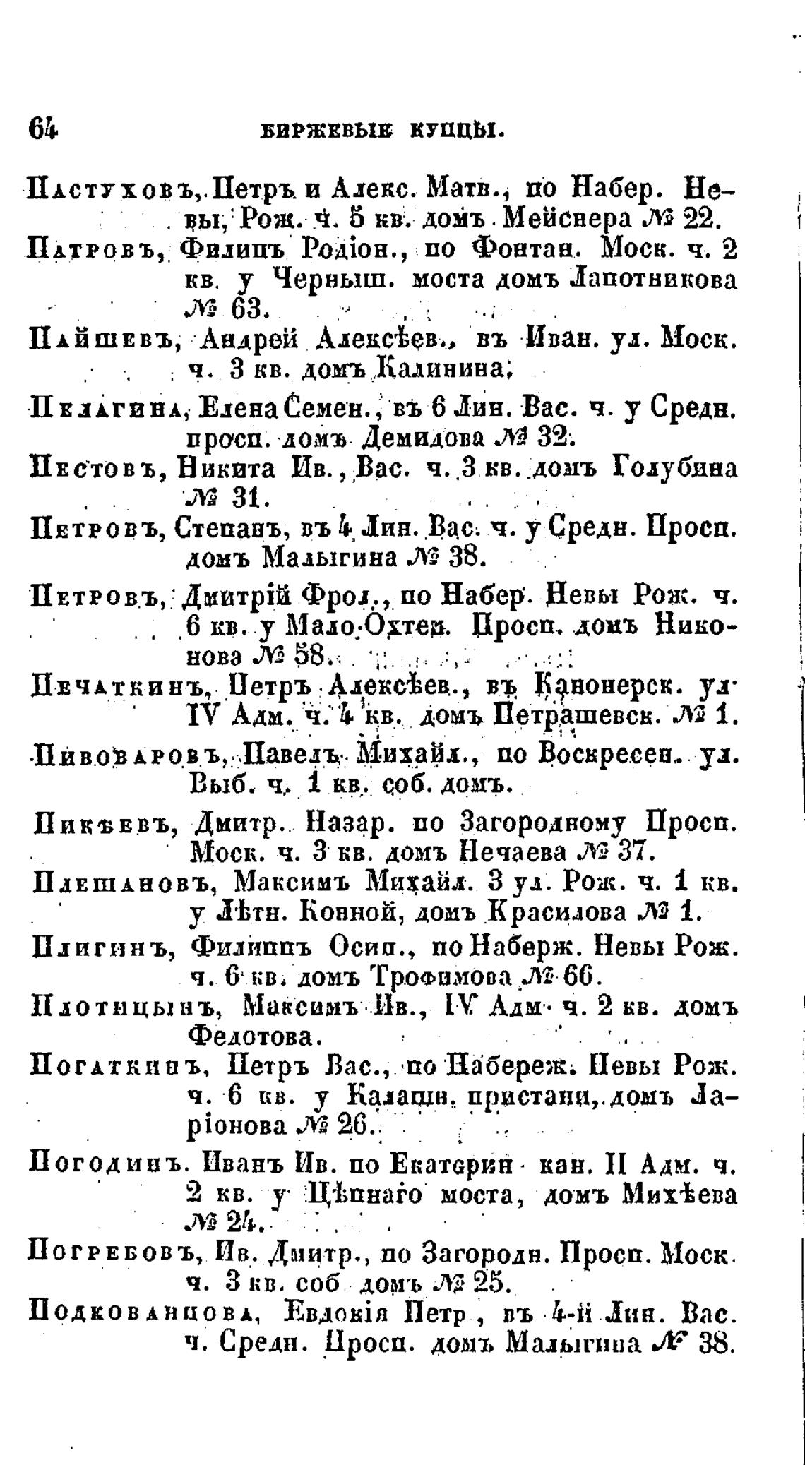 Плигин ъ, Фидйппъ Осип., по Наберж. Невы Рож.