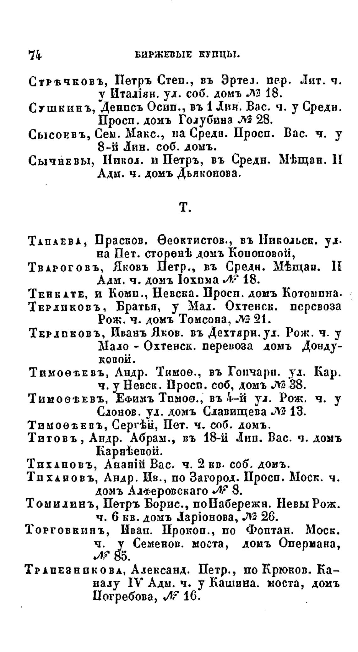 ТИХА вов ъ, Андр. Ив. , по Загород. Проси. Моск. ч.