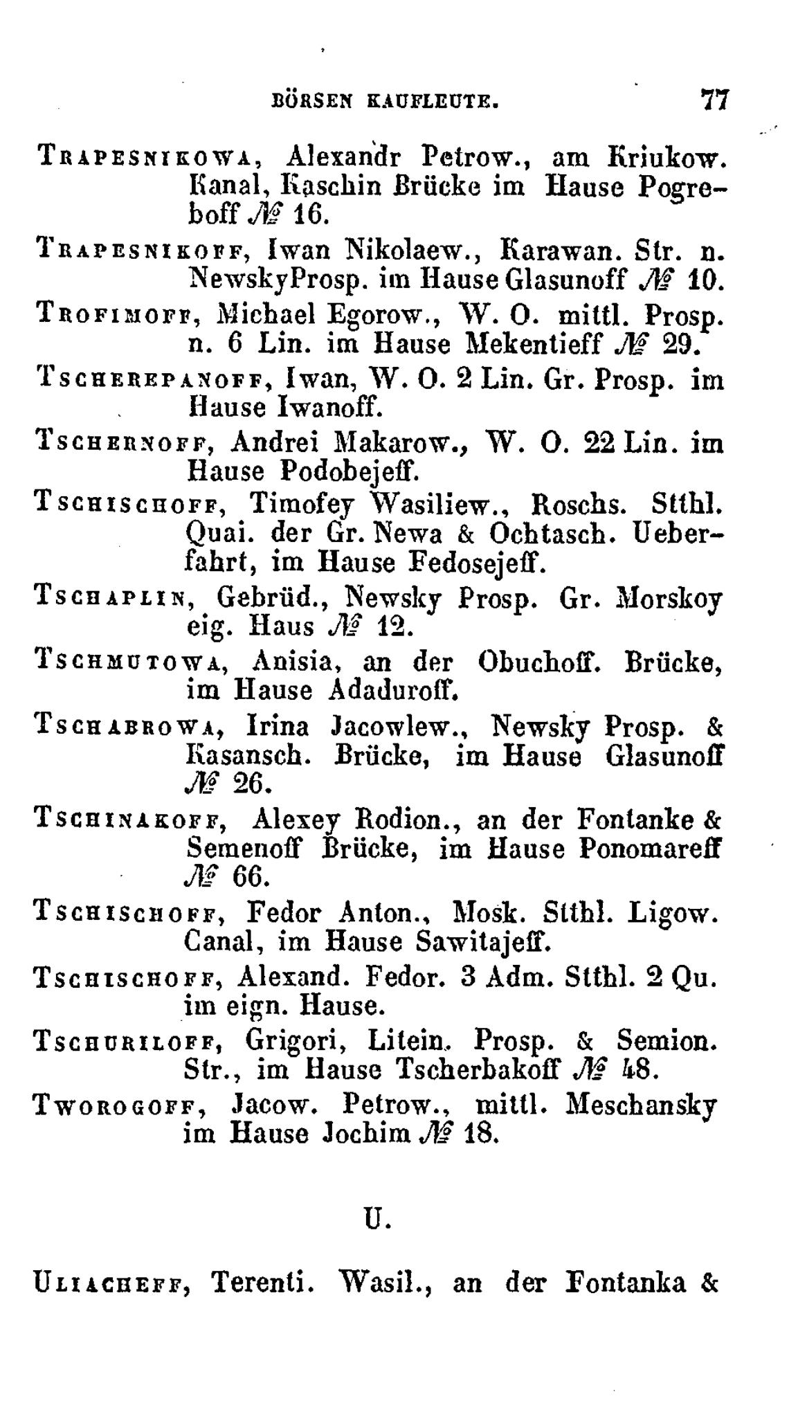 TSCHINAKOFF, Alexey Rodion., ап der Fontanke &