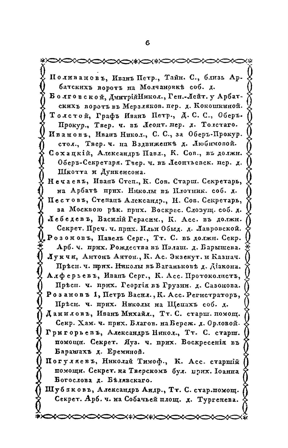 Оберъ-Секретаря. Т вер. ч. въ Леонтьспск. пер. д.