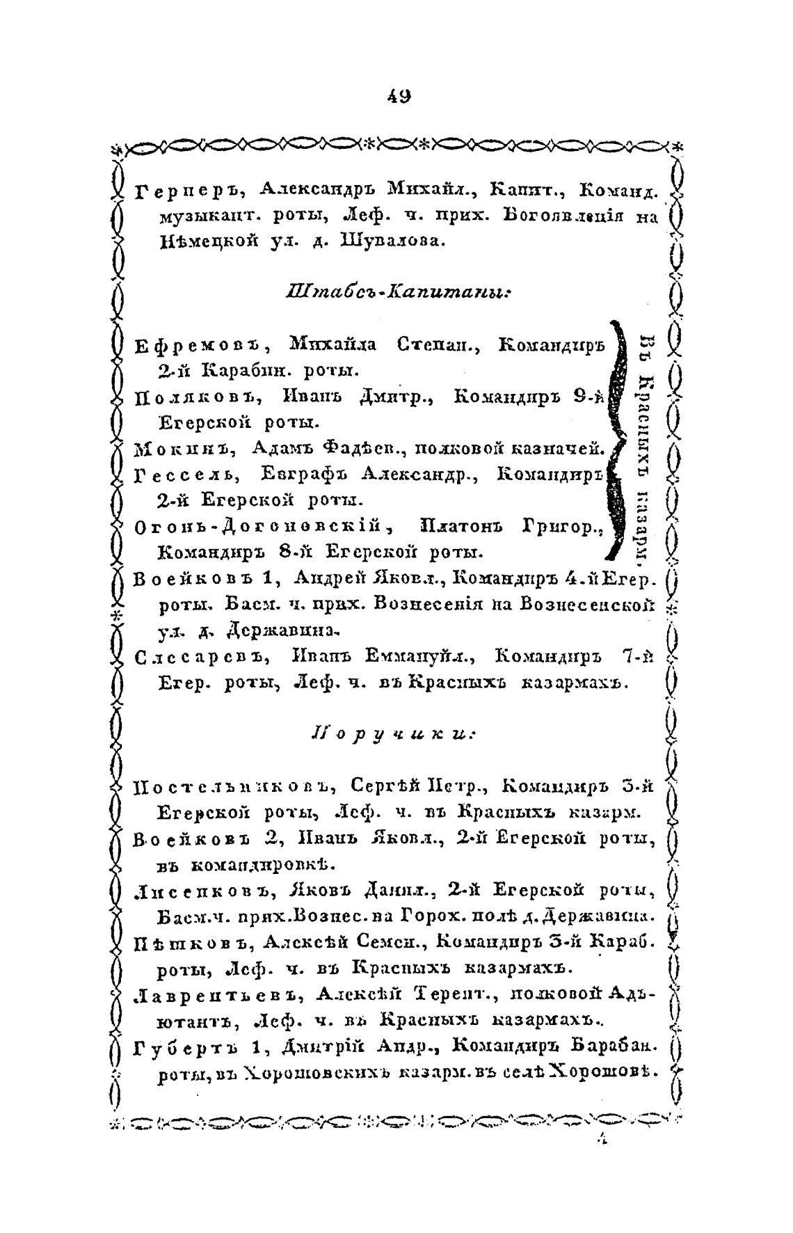 Егерской роты, Леф. ч. въ Краспыхъ казарм.
