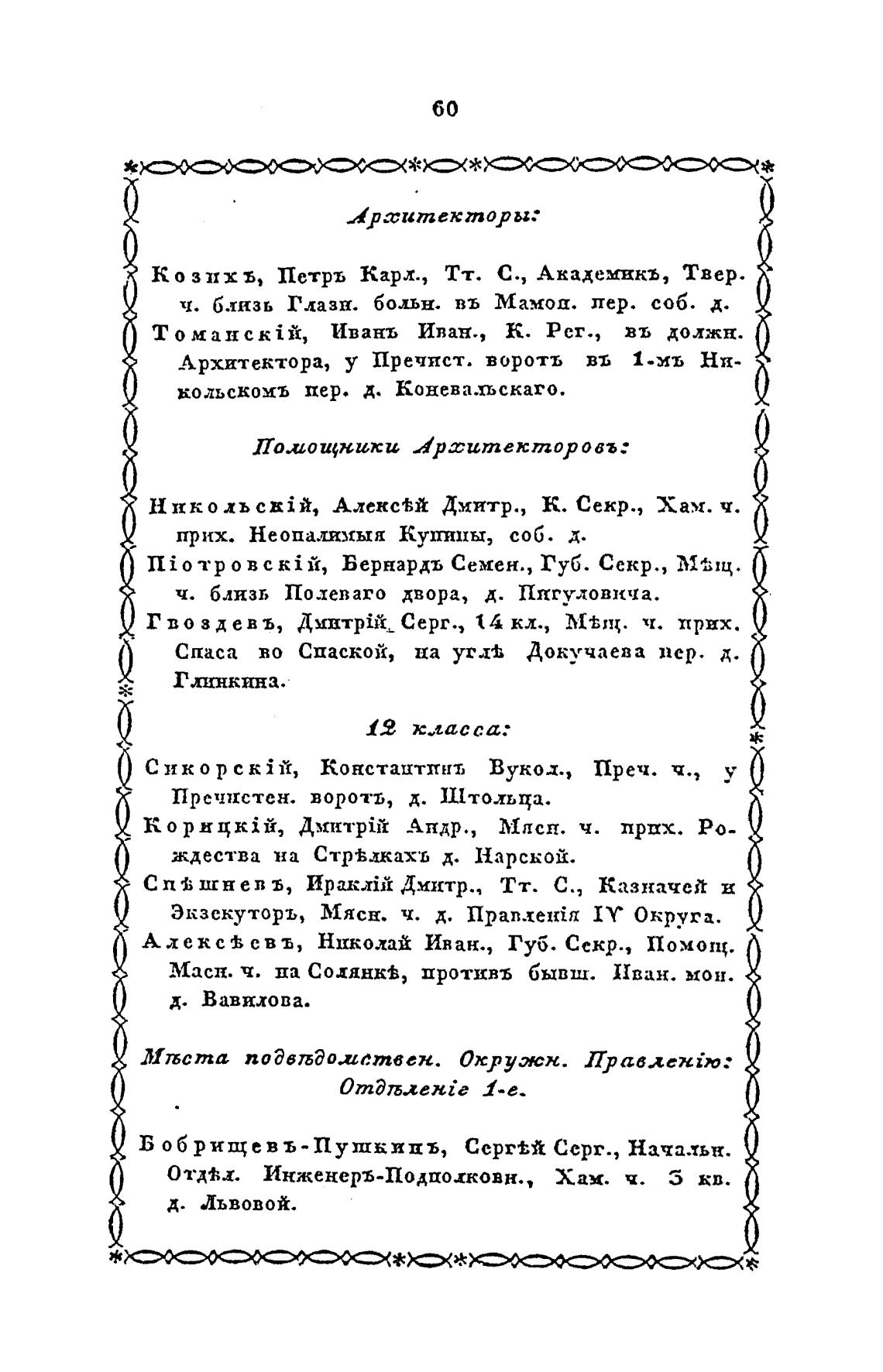 Архитектора, у Пречяст. воротъ въ 1-мъ Ни-