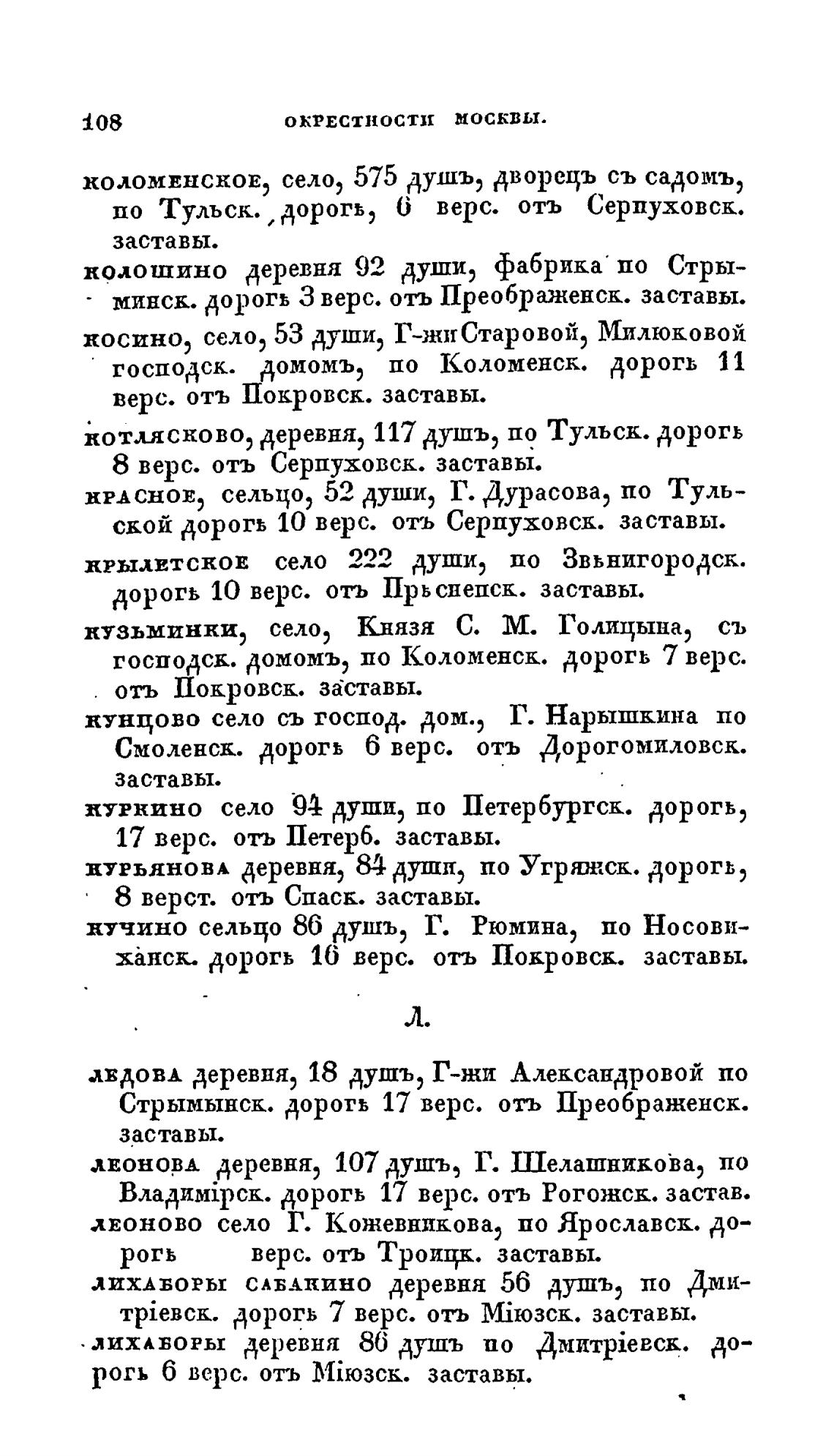 ской дорогь 10 верс. отъ Серпуховск. заставы.