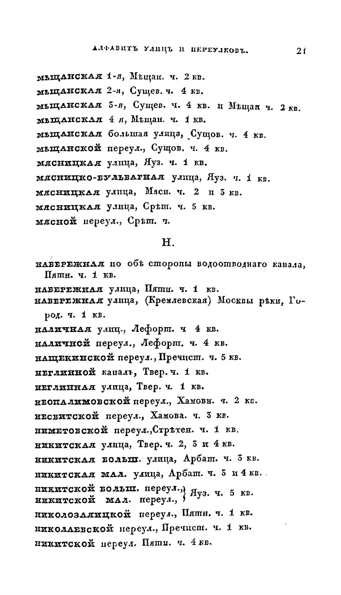 мдсницкдл улица, Яуз. ч. кв.
