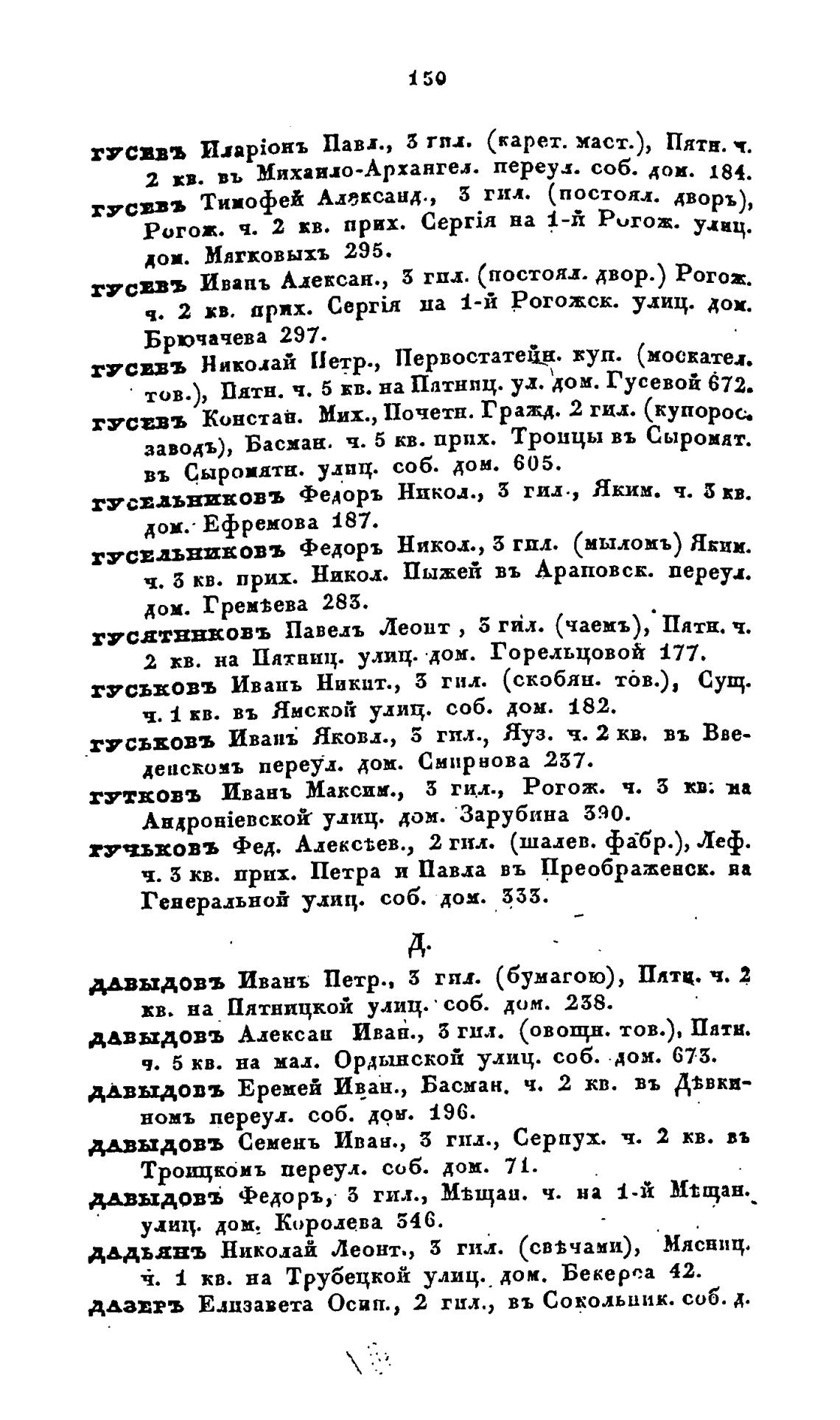 гусввъ Ивапъ Адексан., 5 гпд. (постоял. двор.) Рогож.