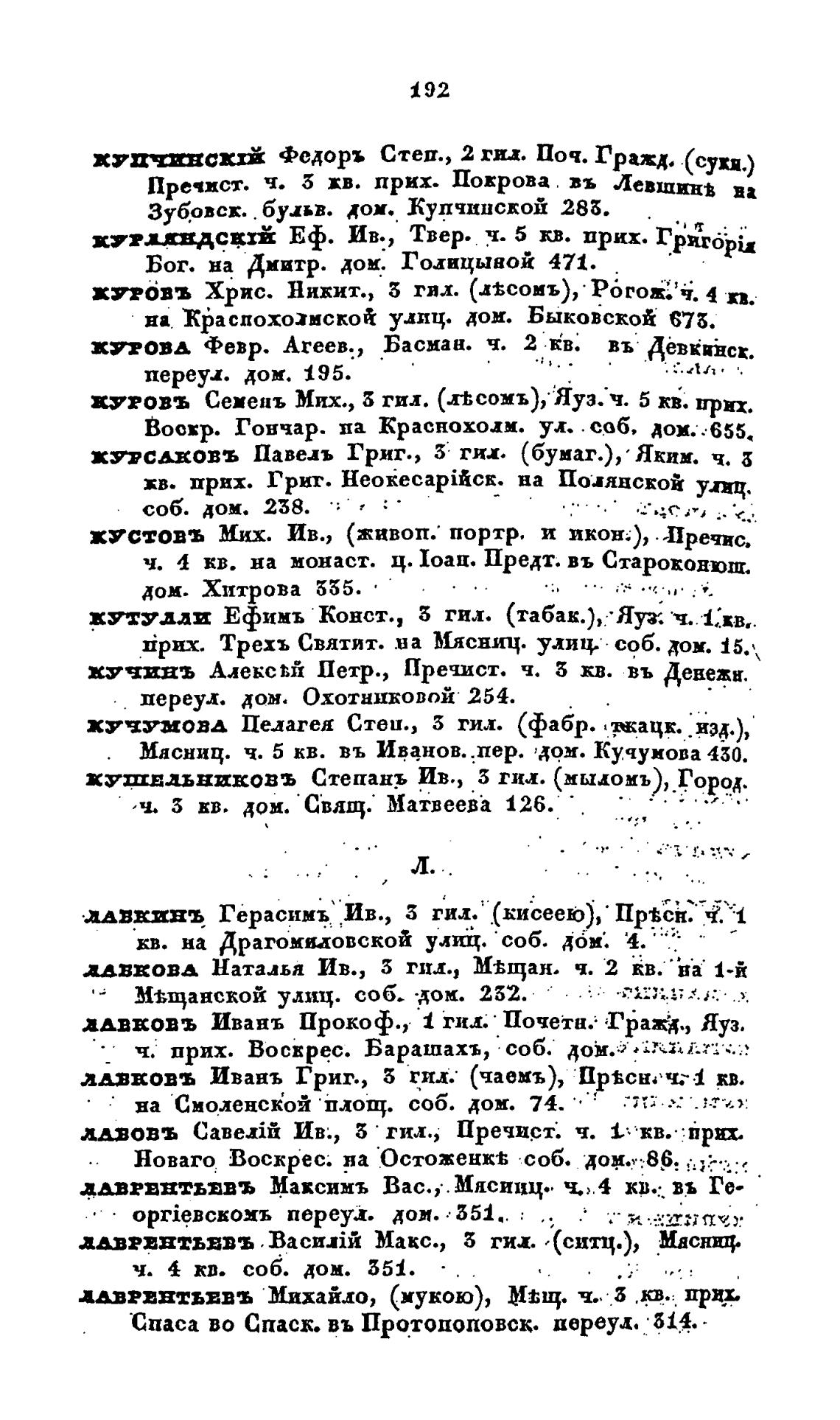 чих. Трехъ Святит. на Мяснич. улиц. себ. дом. 15.“
