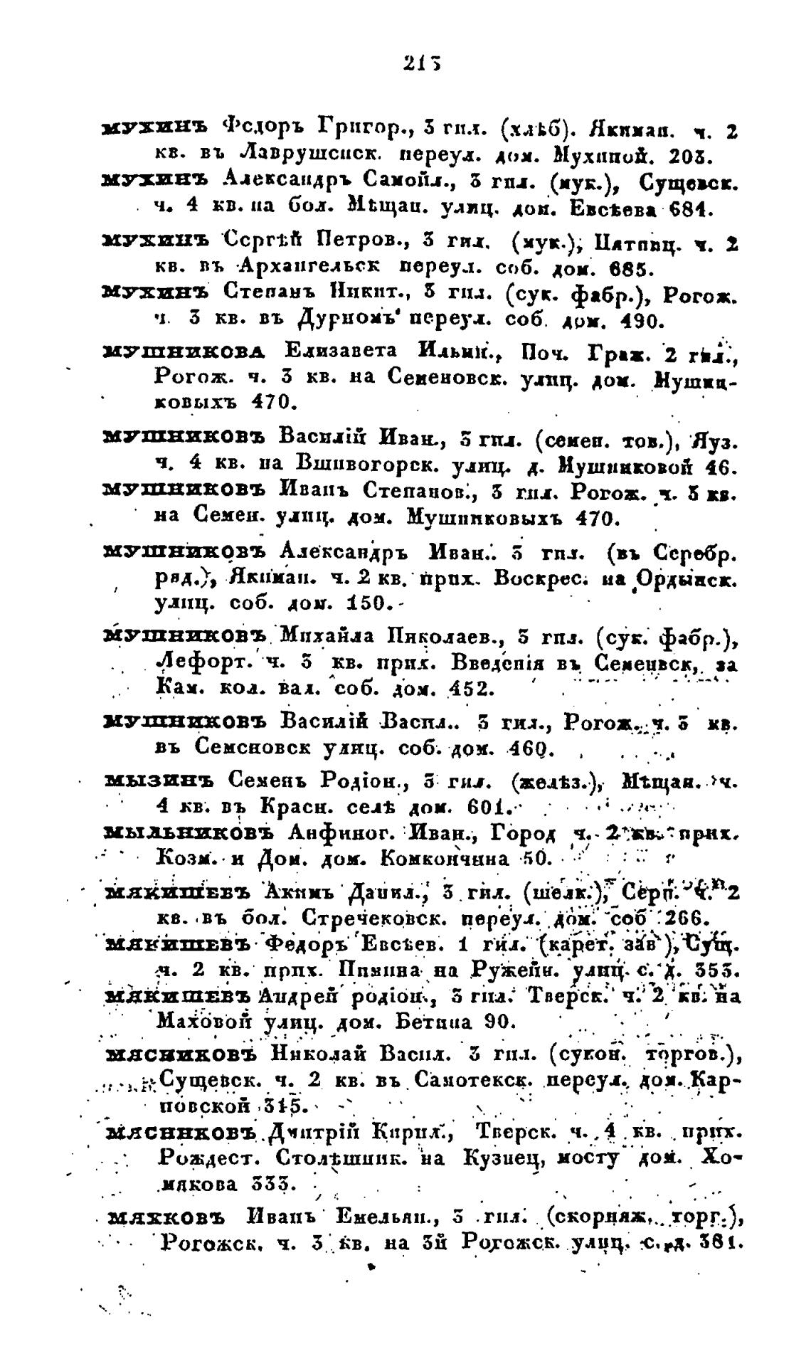 МУШВйЕОВЪ Ивань Степанов; 6 гшл Рогож. ч. 5 кв.