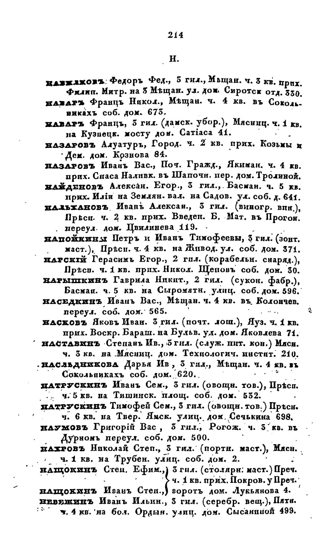 прих. Спаса Наливк. въ Шапочн. пер. дом. Т родиной.