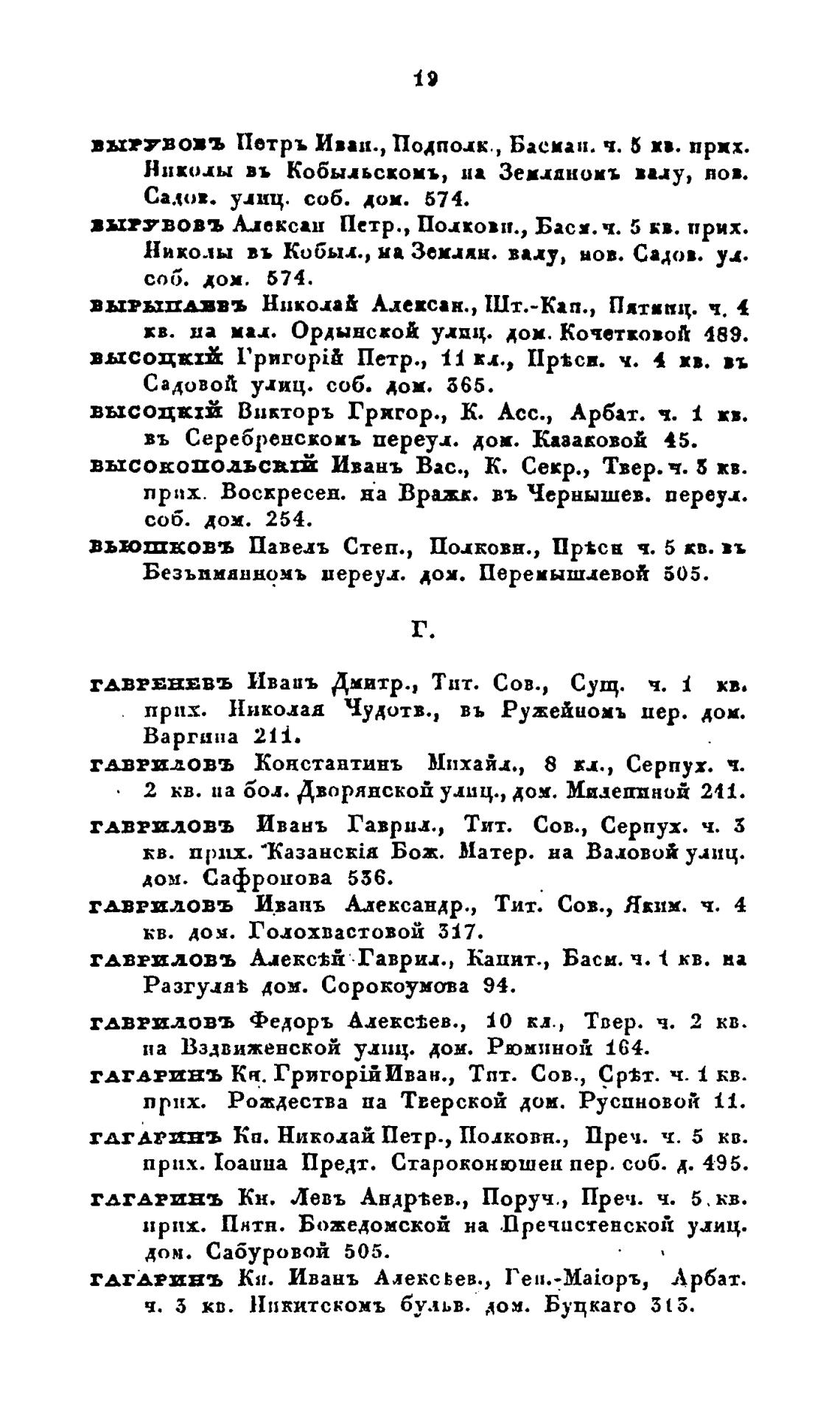 ГАГАРВНЪ Ивань Алекс вев., Арбат.