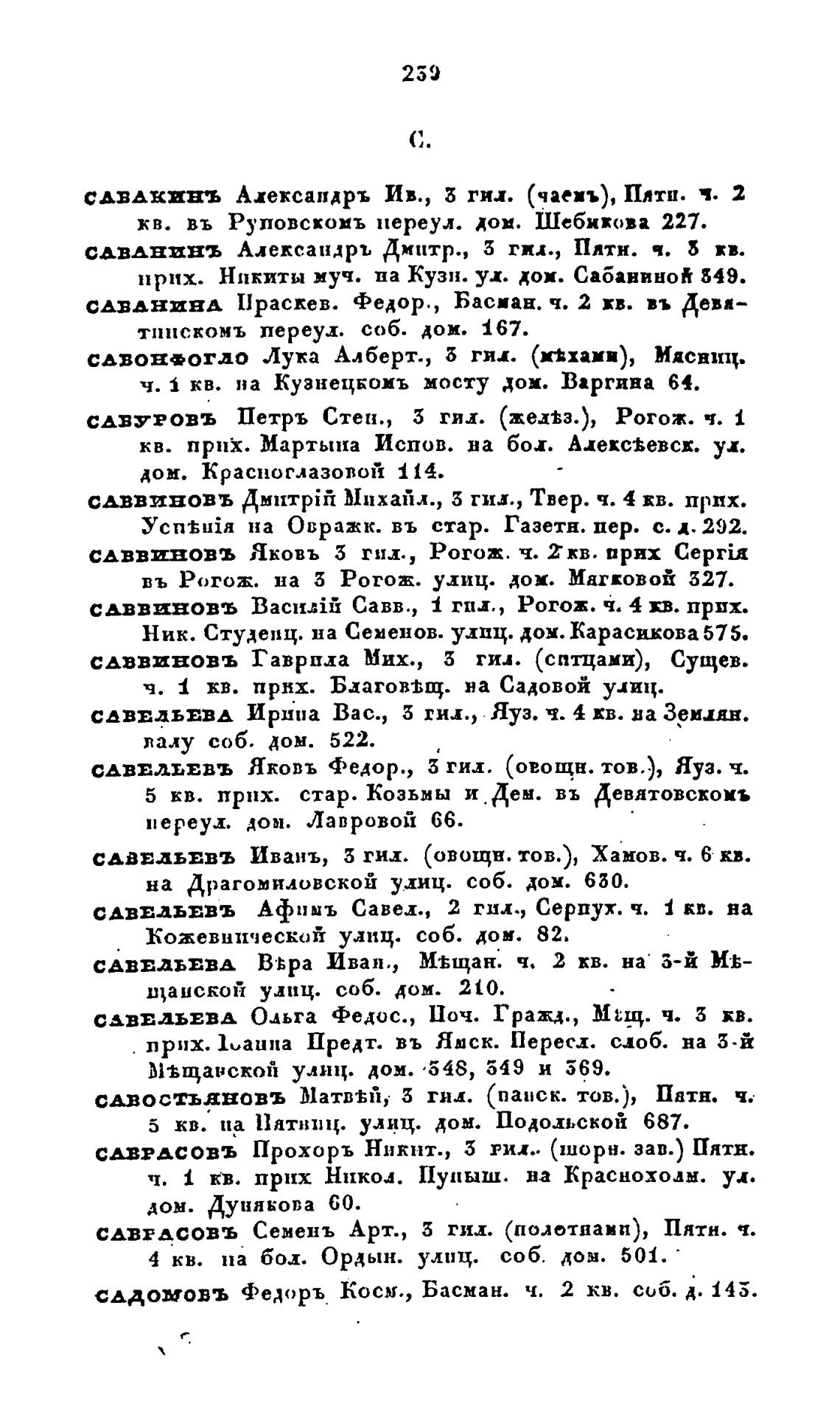САДОМОВЪ Федоръ Косм., Басман. ч. 2 кв. соб. д. 145.