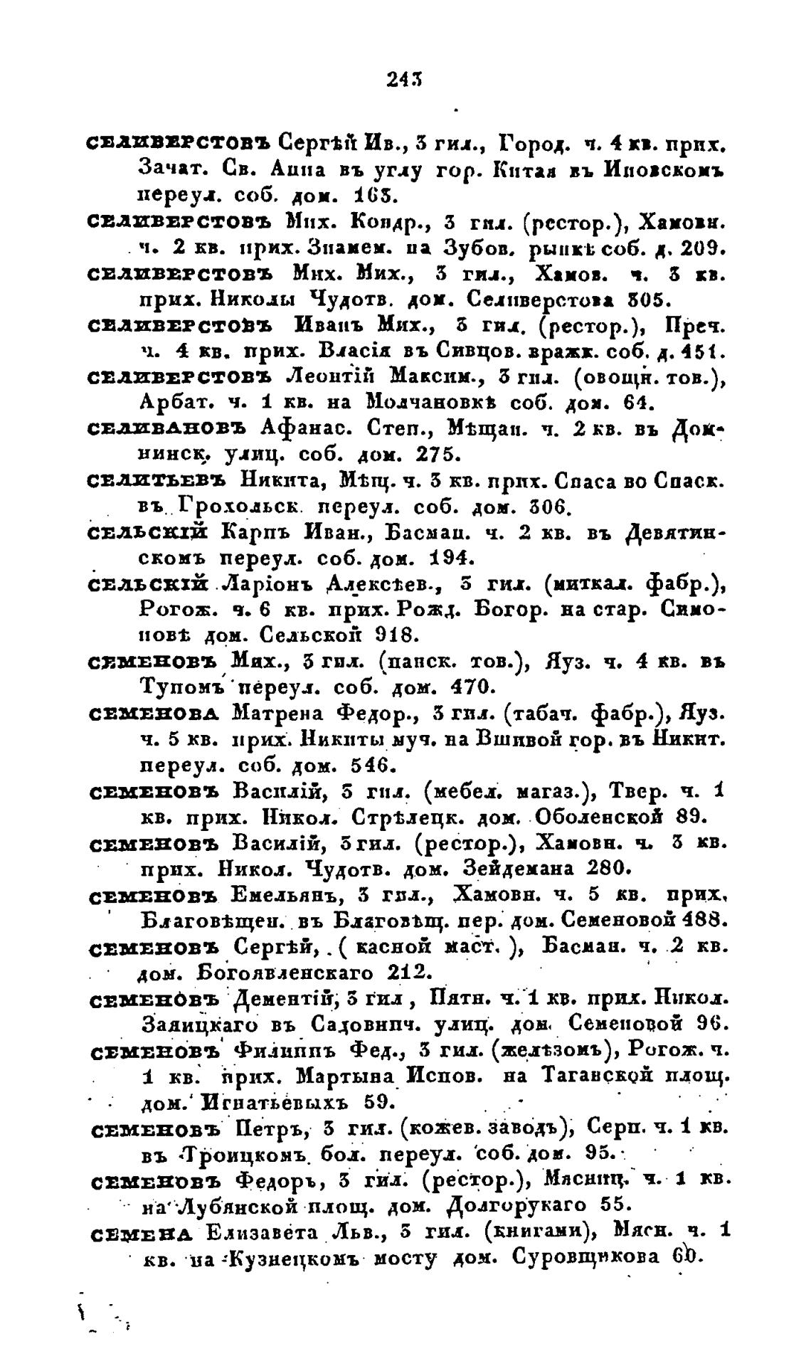 СЕМЕВОВЪ Серг±й, . ( касноЙ маб±. Басман. ч. 2 кв.