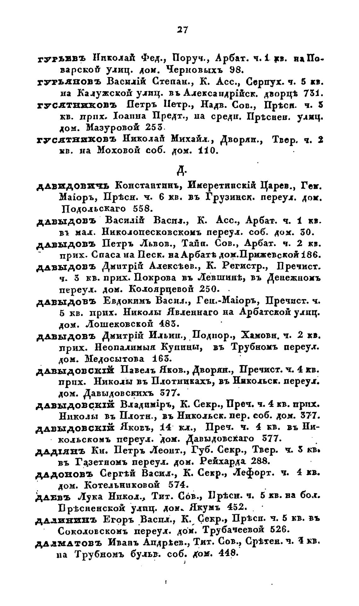 ДАВЫДОВЪ Васпз., К. Асс., Арбат. ч. кв.