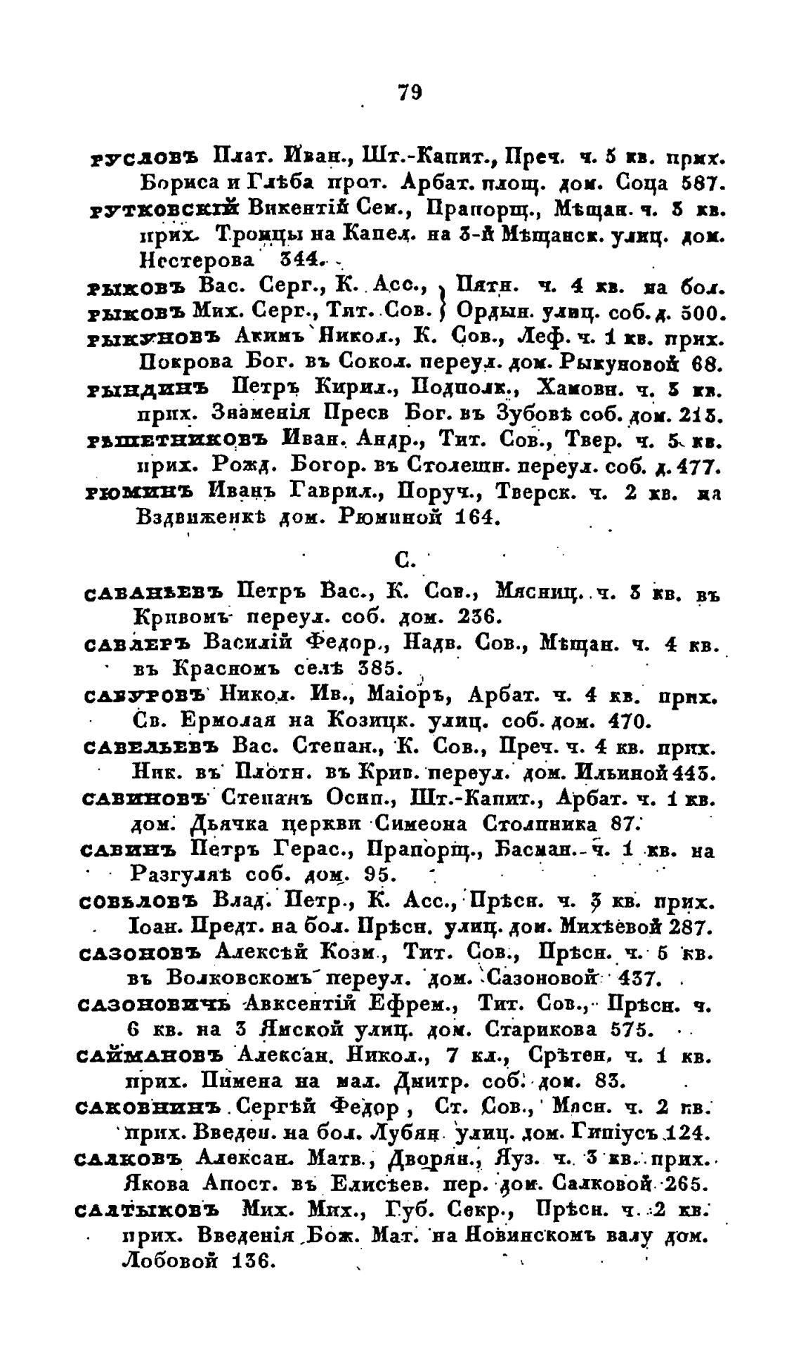 САВВЕОВЪ Степань Осип., Шт.-Капит., Арбат. ч. кв.
