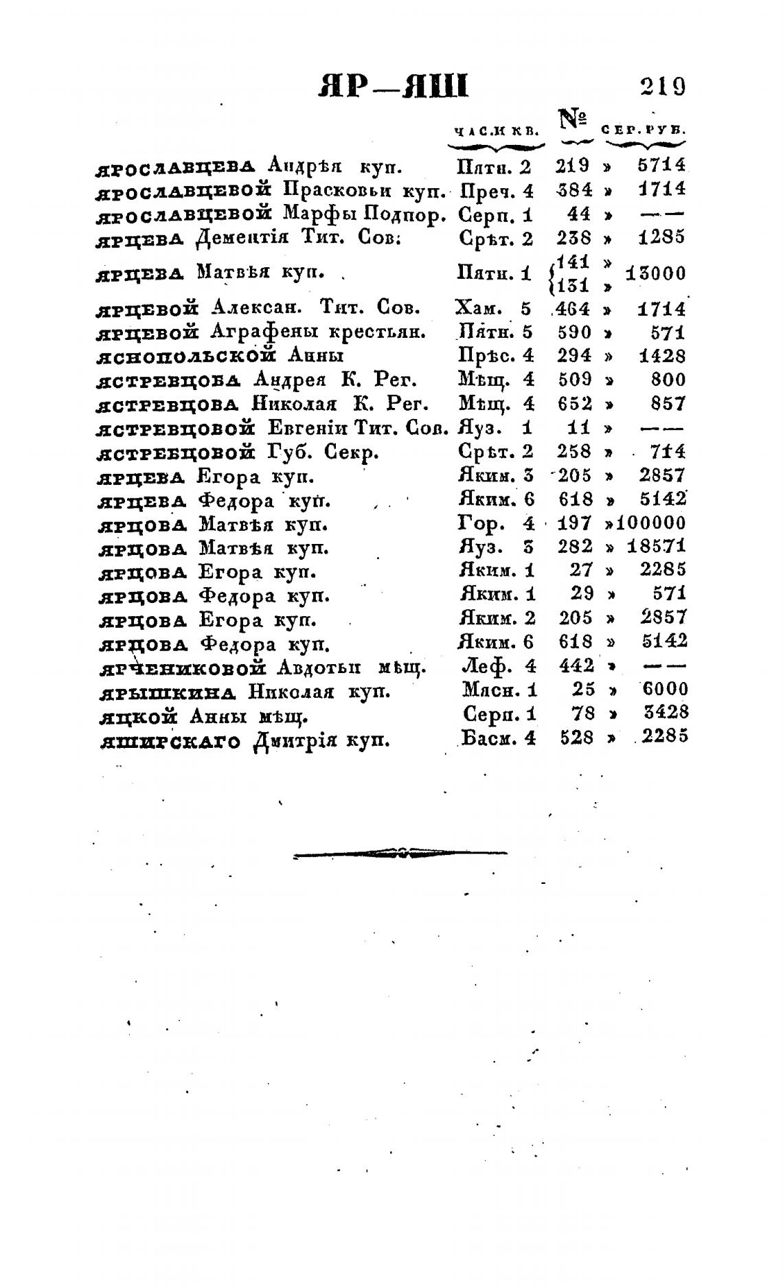 ЯРЦЕВOЙ Аграфены крестьян.