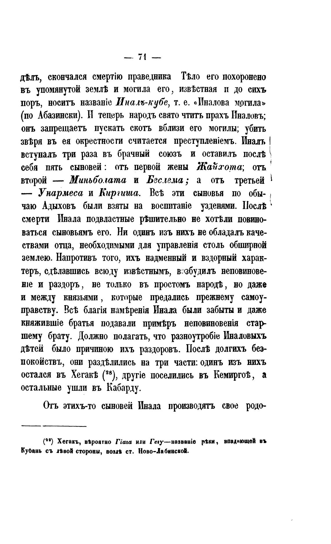 (по Абазински). И тецерь народъ свято чтить прахъ Иналовъ;