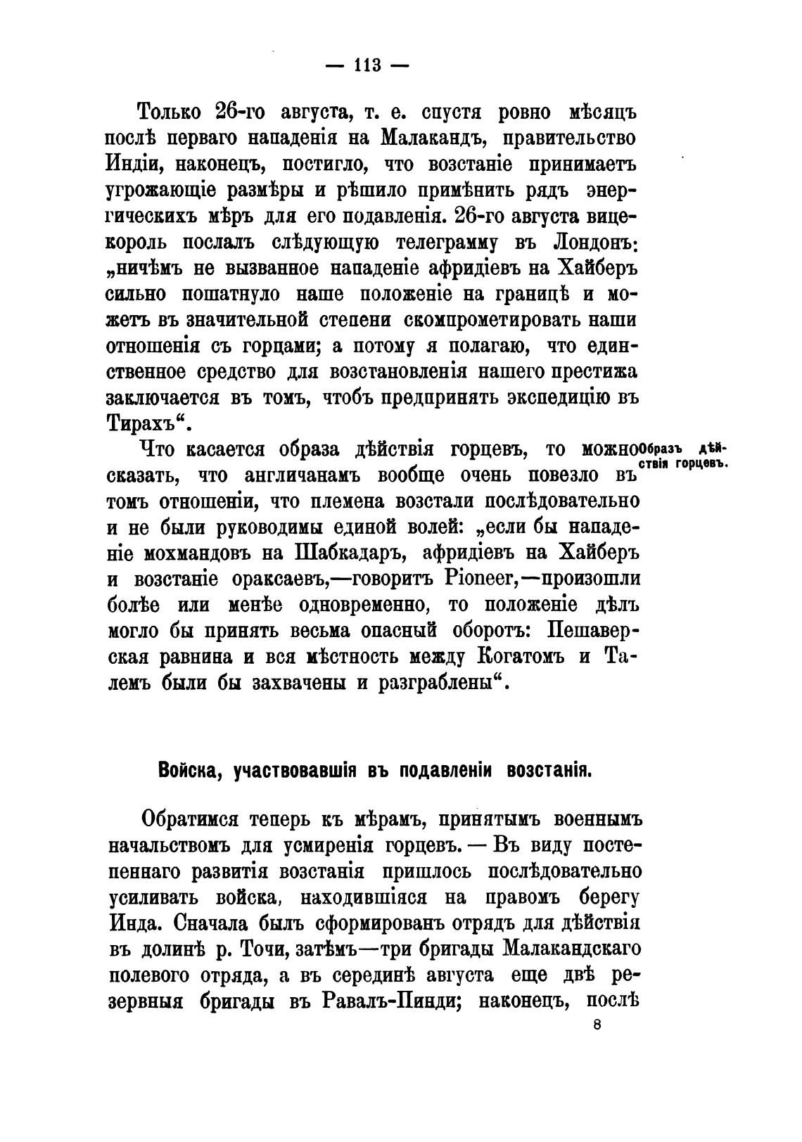 въ долинеЬ р. Точи, затЬмъ—три бригады Малакандскаго
