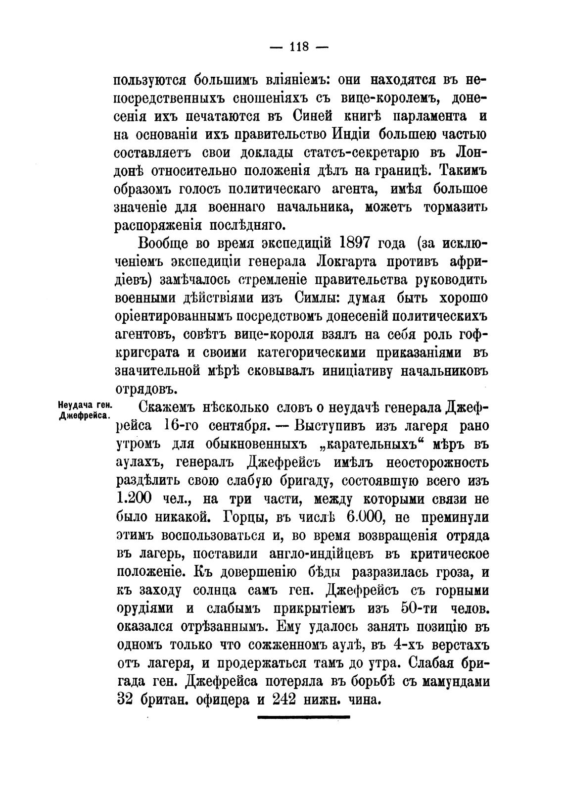 аулахъ, генераль Джефрейсъ неосторожность