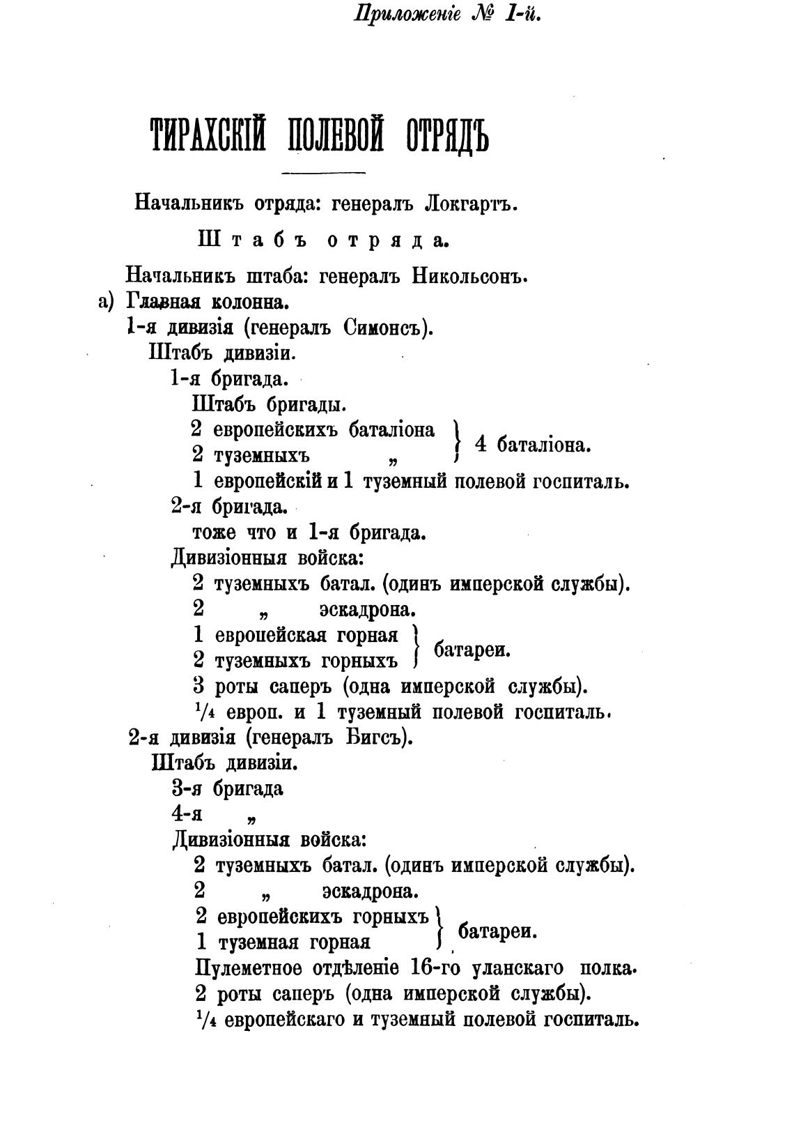 Начальникъ отряда: генераль Локгартъ.