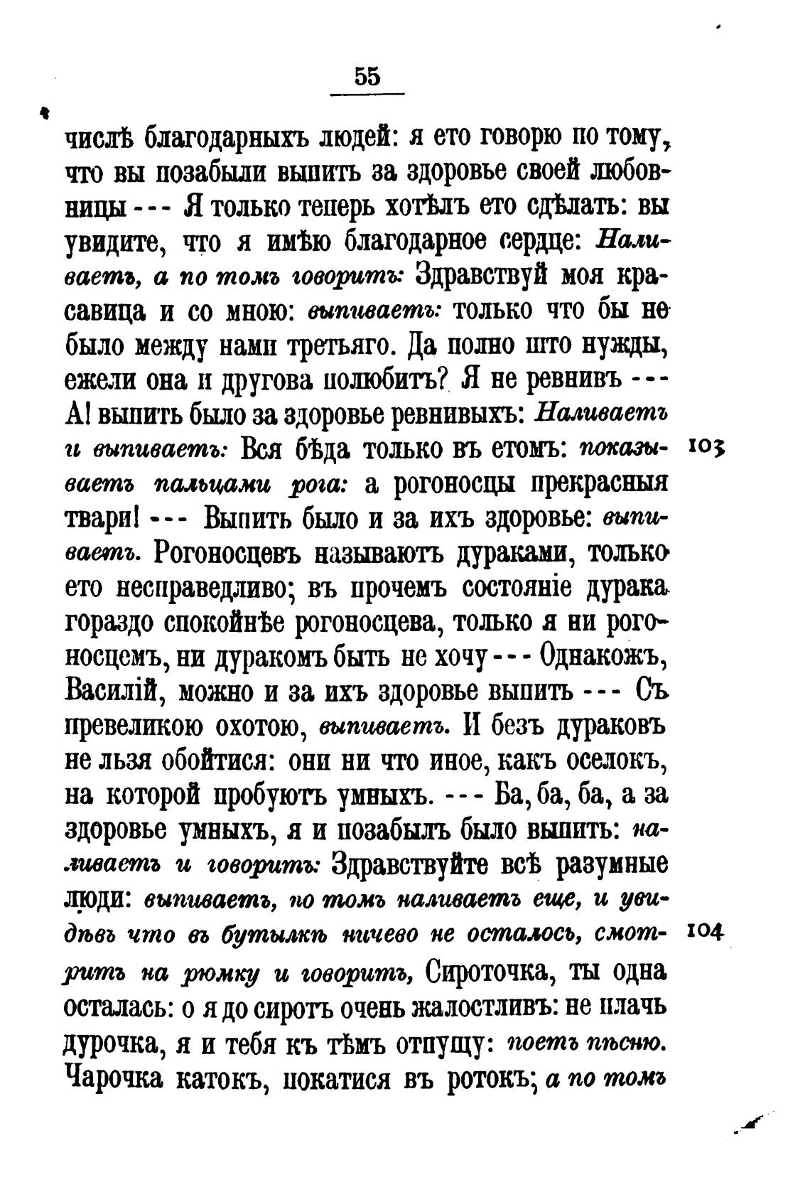 А! выпить было за здоровье ревнивыхъ: Наливает