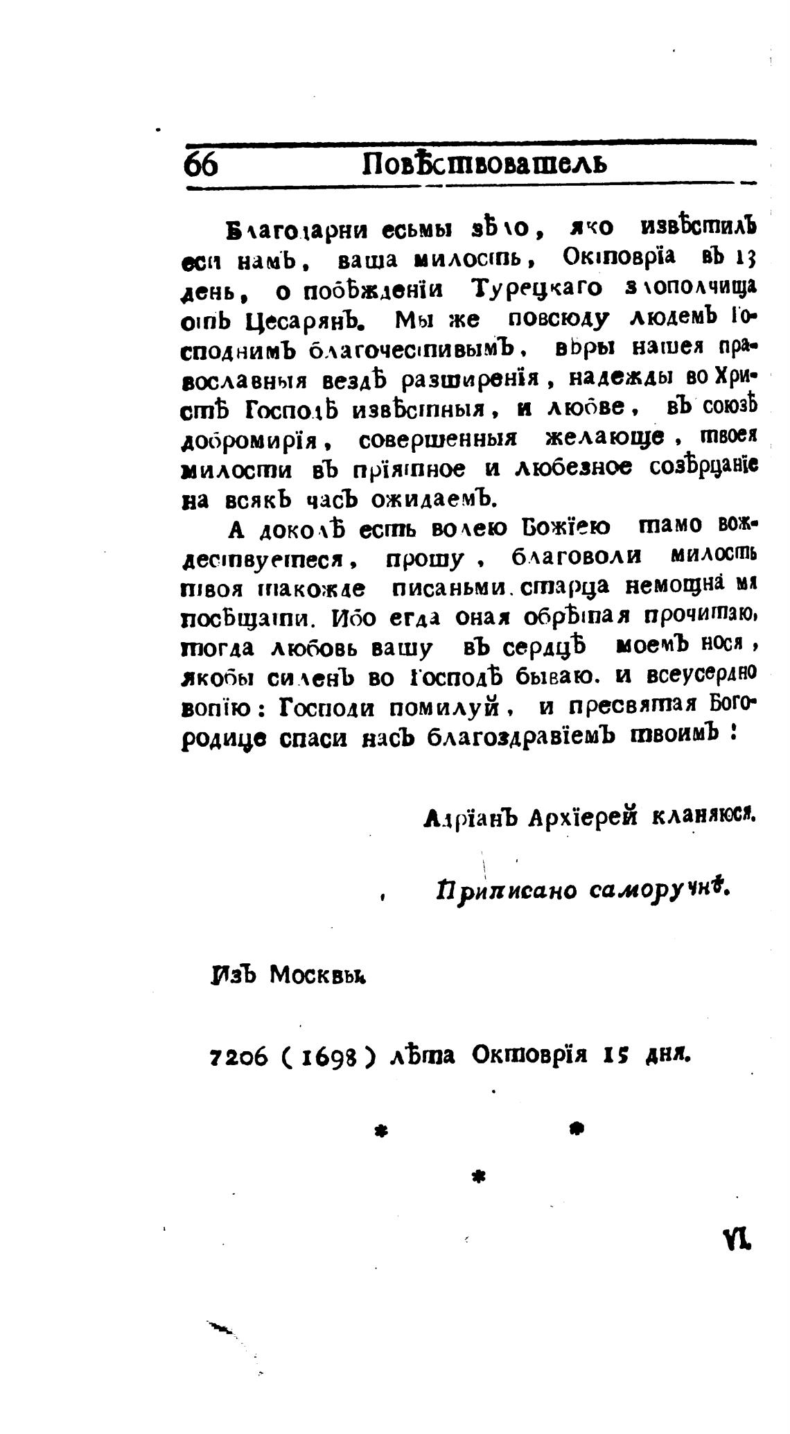 7206 ( 1698 ) лђта Октовр\я 1; дня.