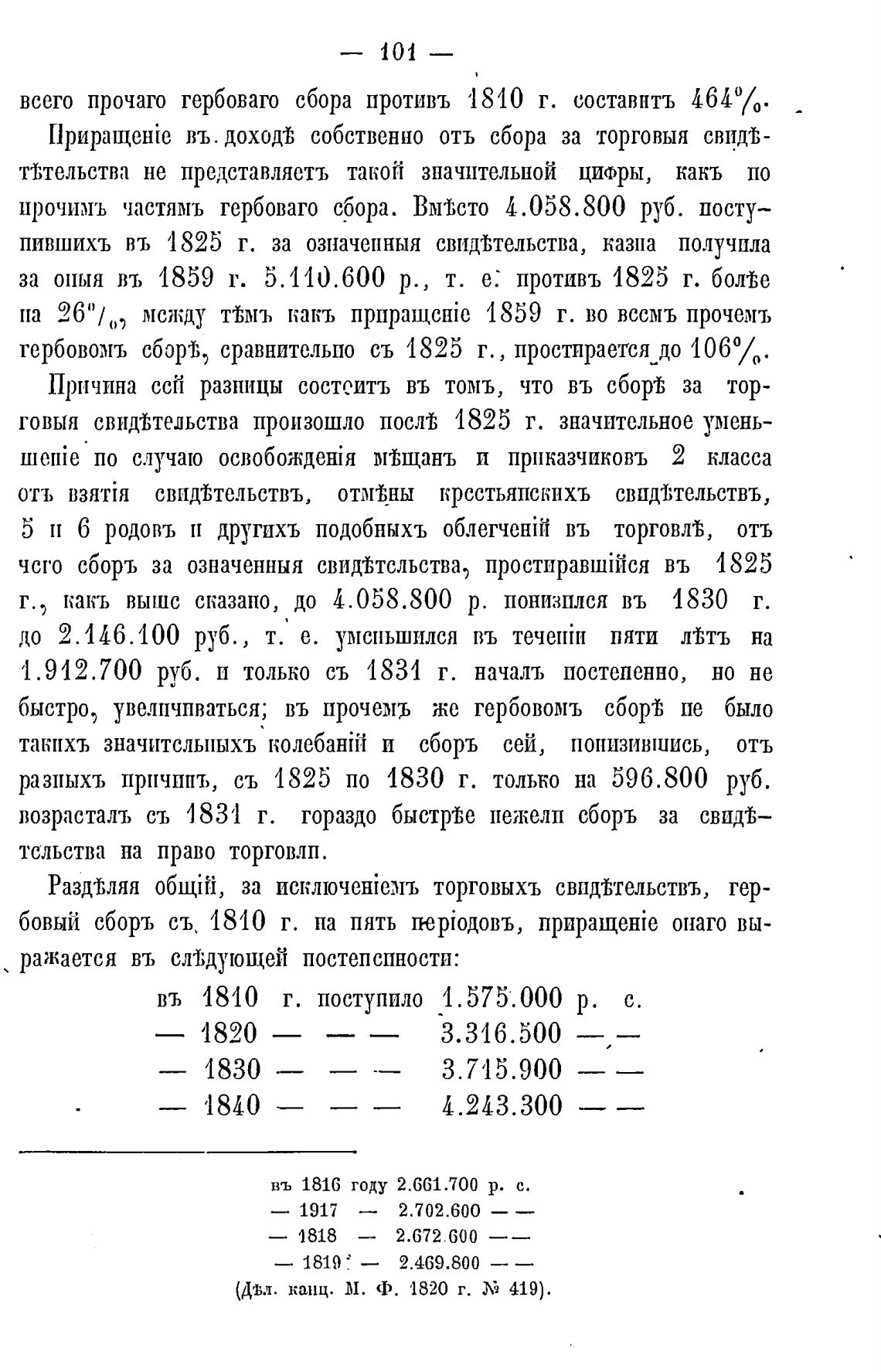 какъ вышс сказано, до 4.058.800 р. понизплся въ '1830 г.