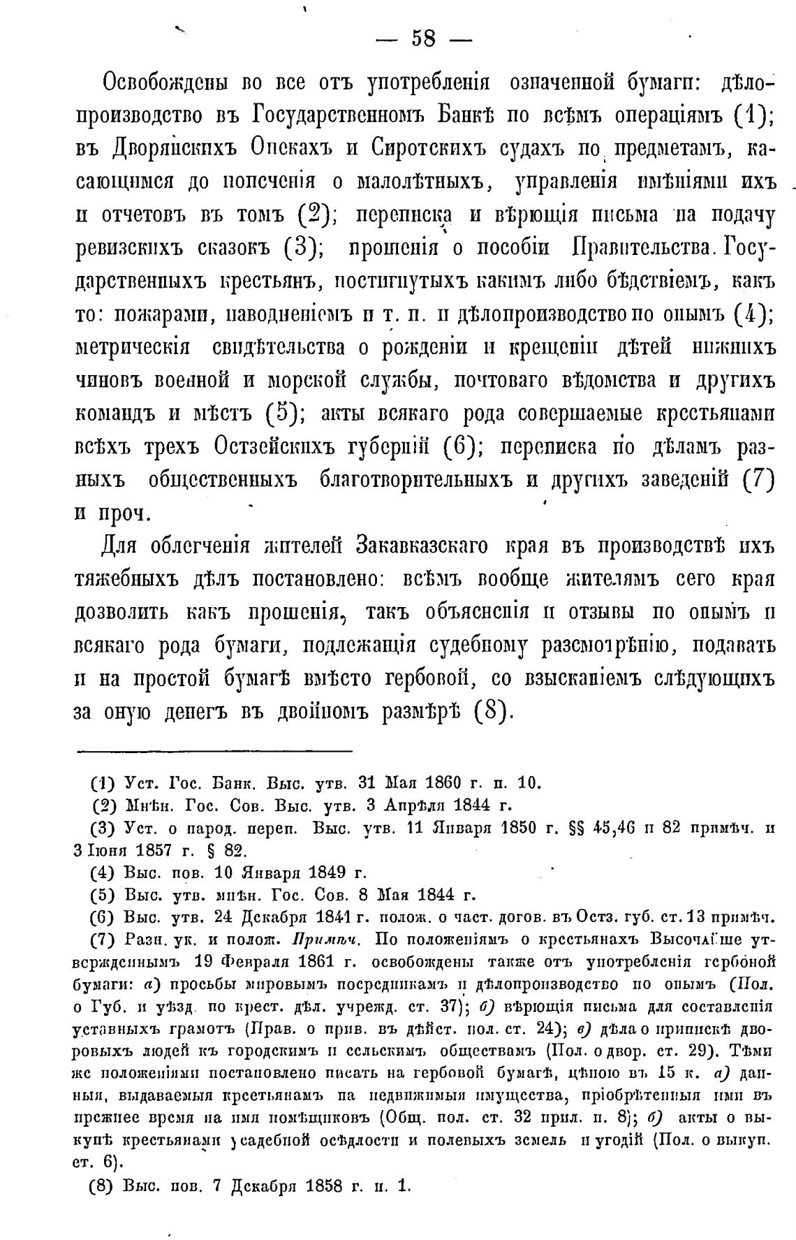 (8) Выс. пов. 7 Декабря 1858 г. и. 1.