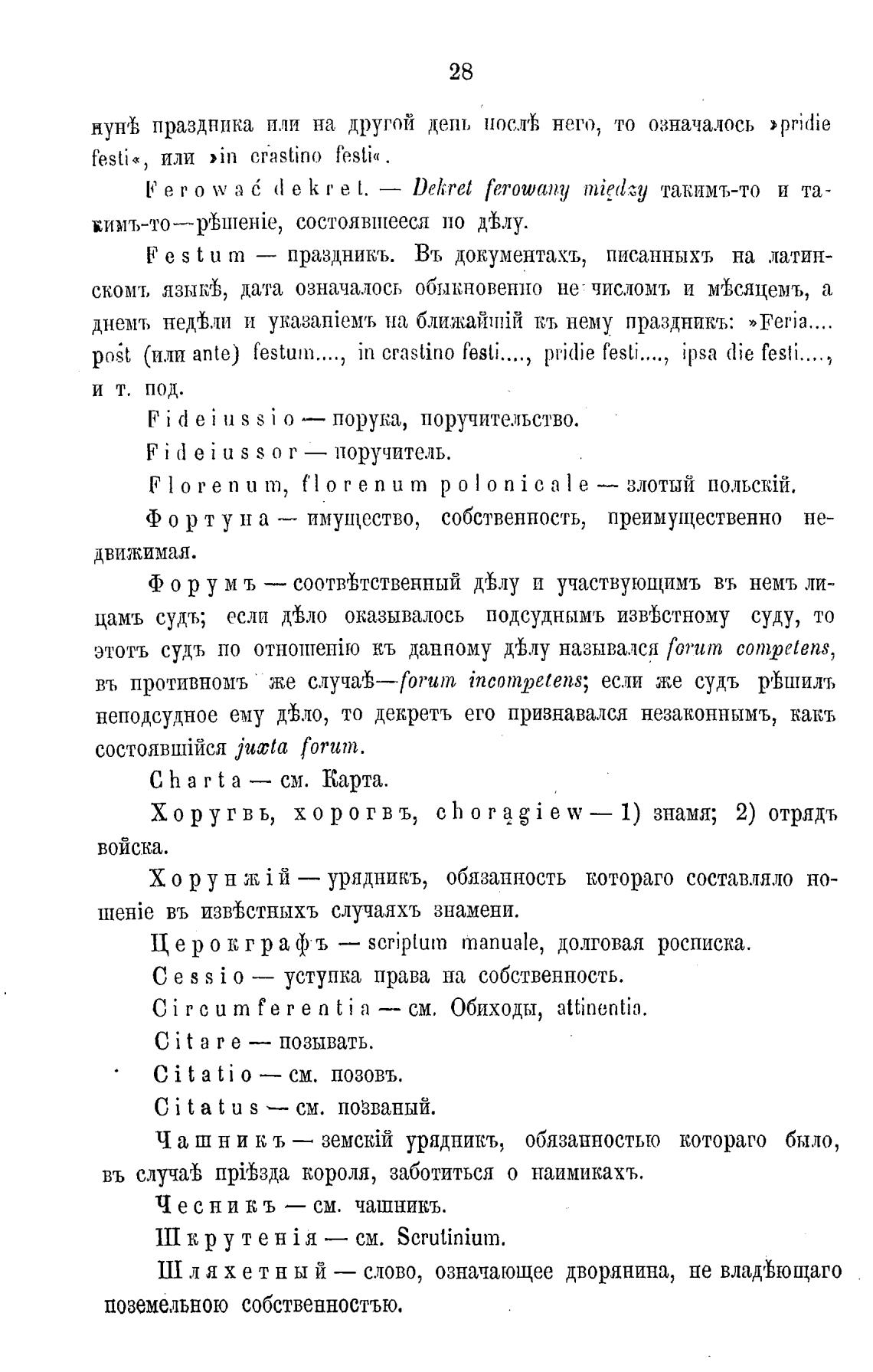 — праздникъ. Въ документа.хт„ писанныхт, на латин-