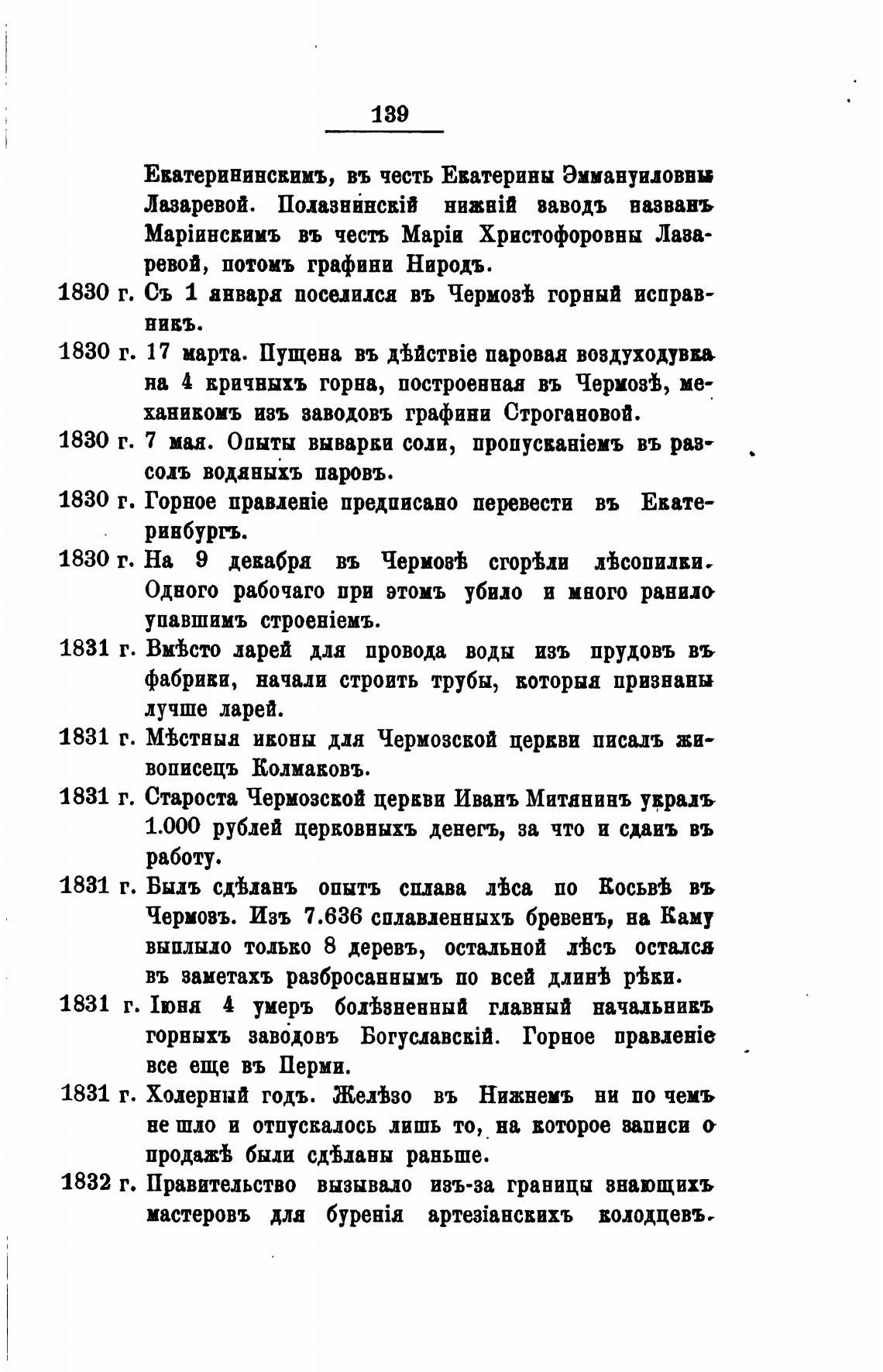1830 г. На 9 девабра въ Чермов•ћ сгорЬи лђсопилви.