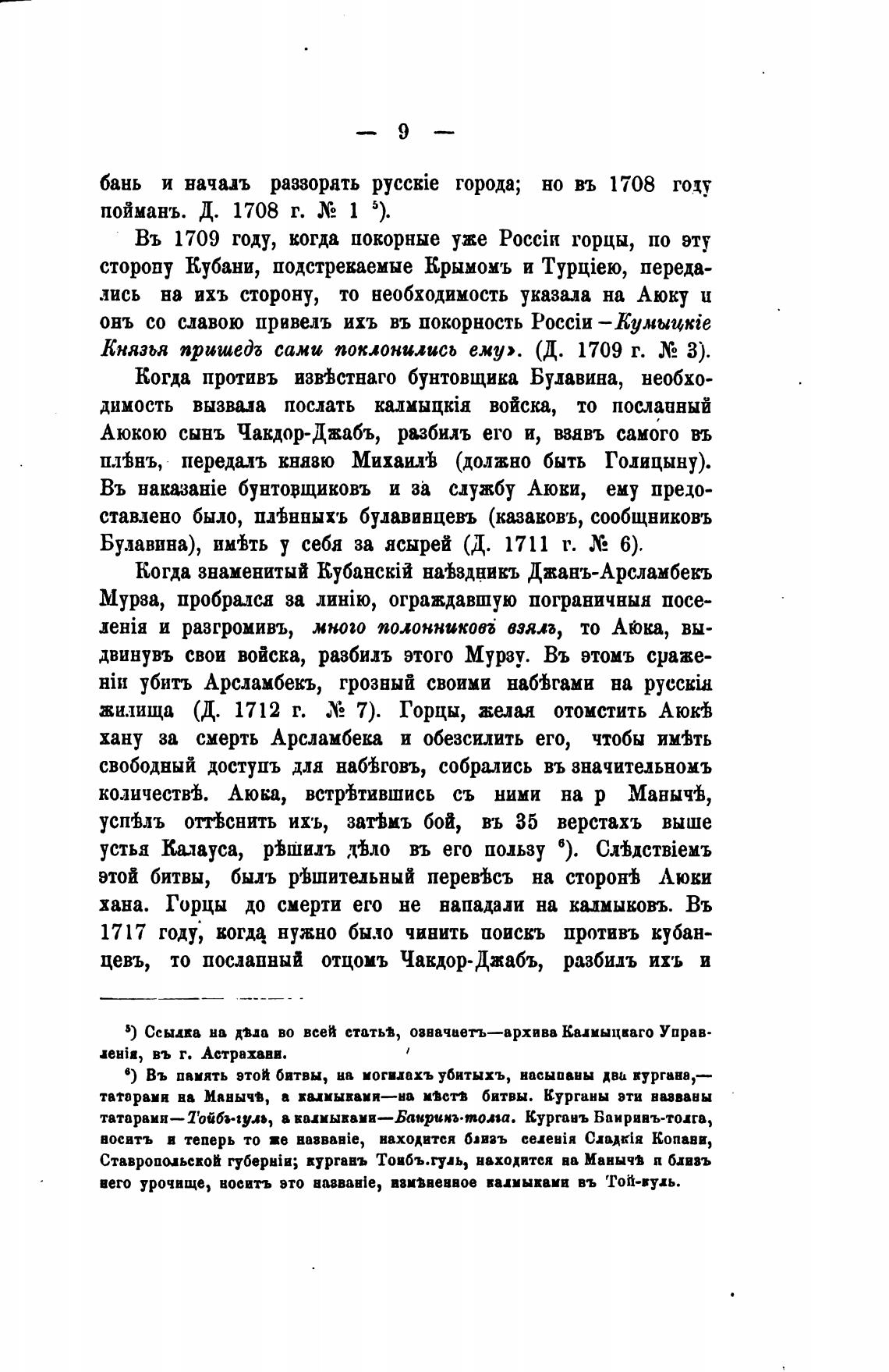 5) Ссыпа на ода во всей статьТ, озвачаетъ—архива Калмыцкаго Управ-