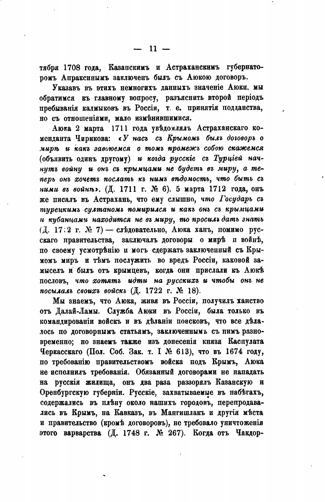 ромъ Апраксиныиъ заключень быль съ Аюкою договоръ.