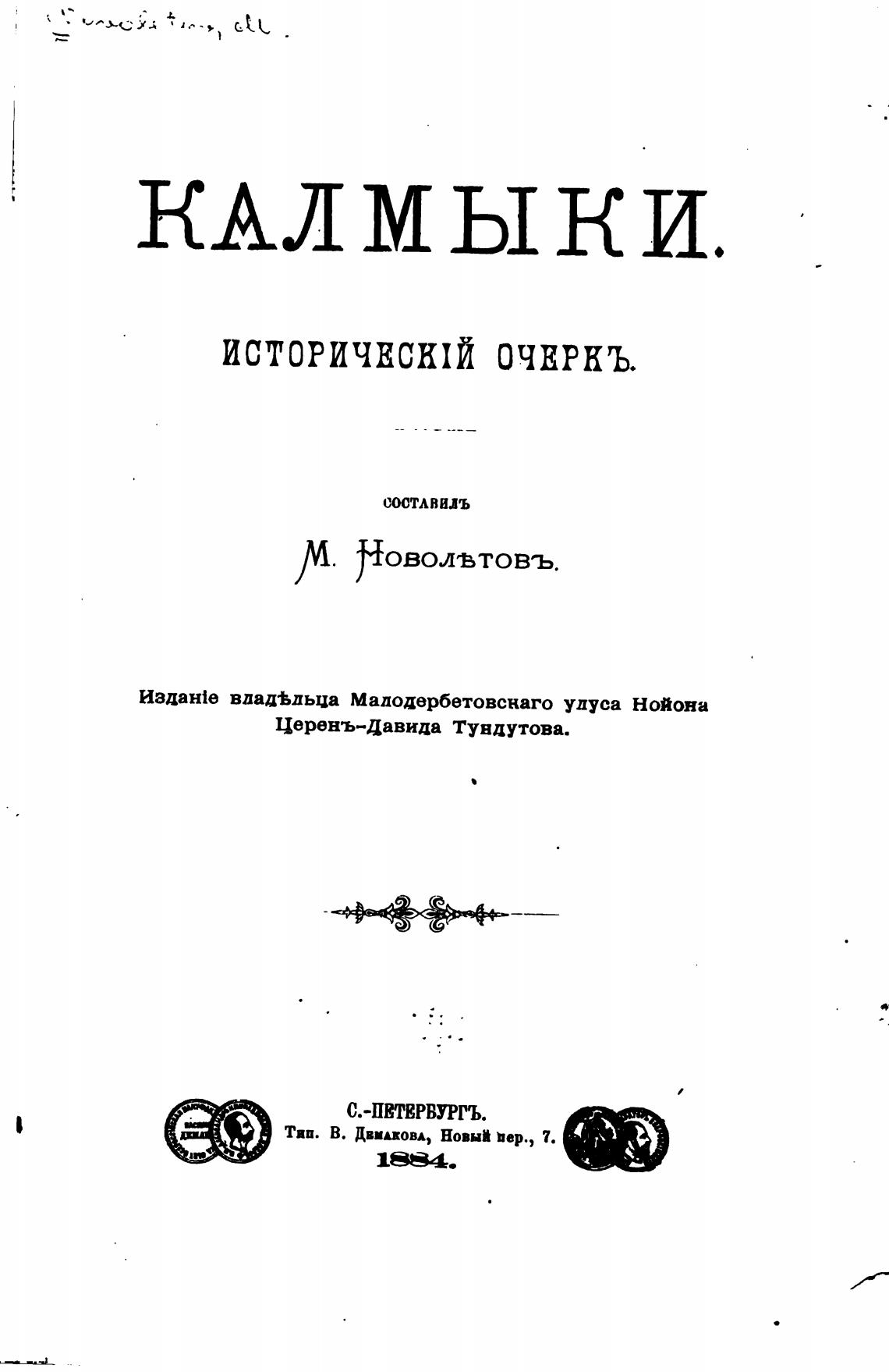 Издан1е вдад%дьца Мадодербетовснаго улуса Нойона