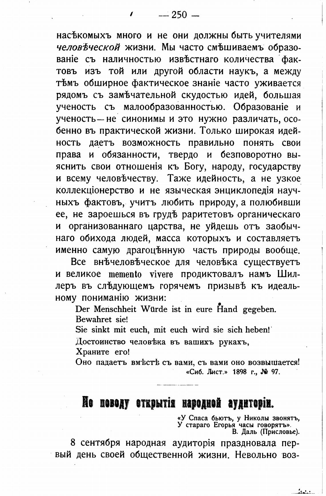 и великое memento vivere продиктовалъ намъ Шил-
