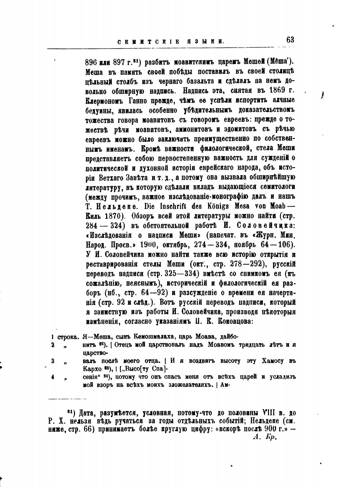 о надписи Меши» (напечат. въ «Журн. Мин.