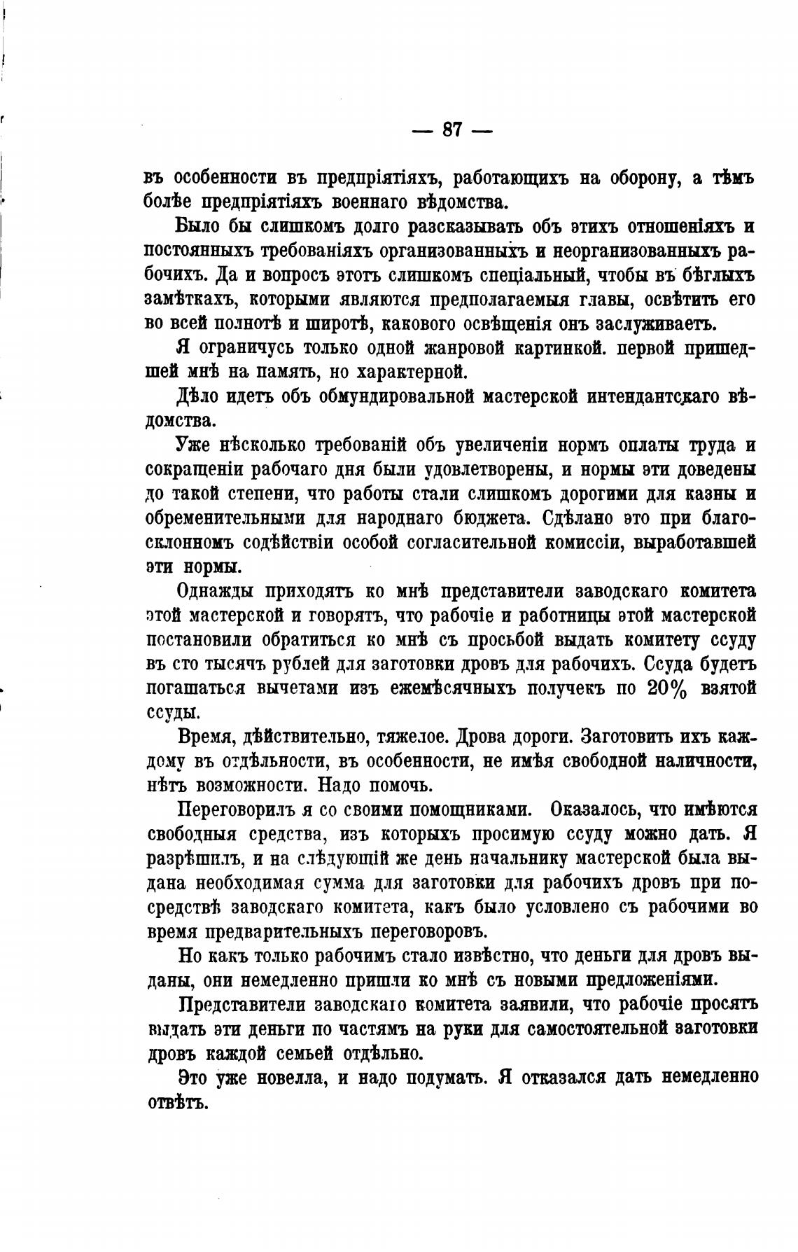 въ сто тысячь рублей для заготовки дровъ для рабочихъ. Ссуда будеть