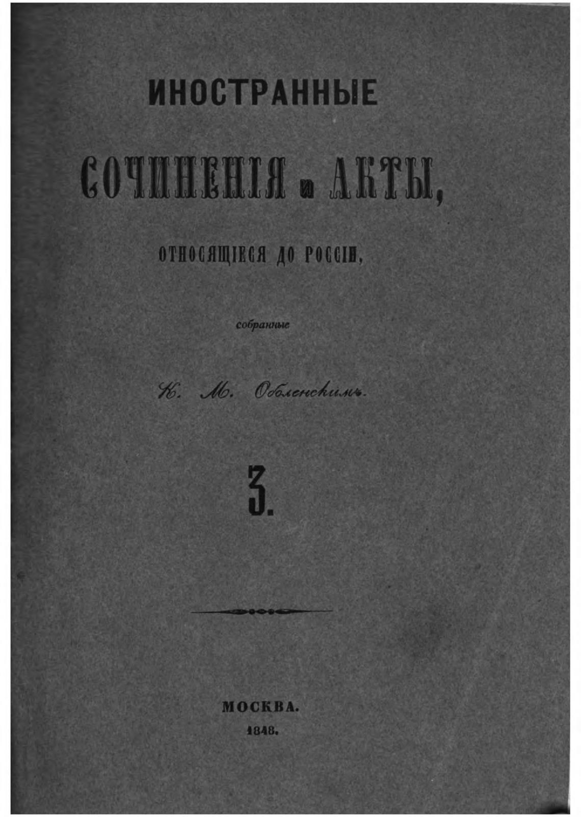 Иностранные сочинения и акты, относящиеся до России, собранные к. М. Оболенским. Т. 3. Дневник Самуила Бельского. Инструкция Самуилу Грушецкому. - Оболенский М. А.