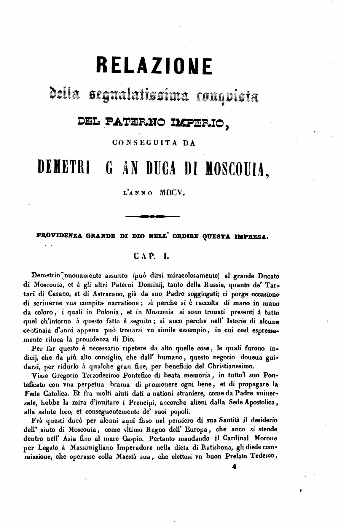 Demetrio:nuouamente assunto (рид dirsi miracolosamente) al grande Ducato
