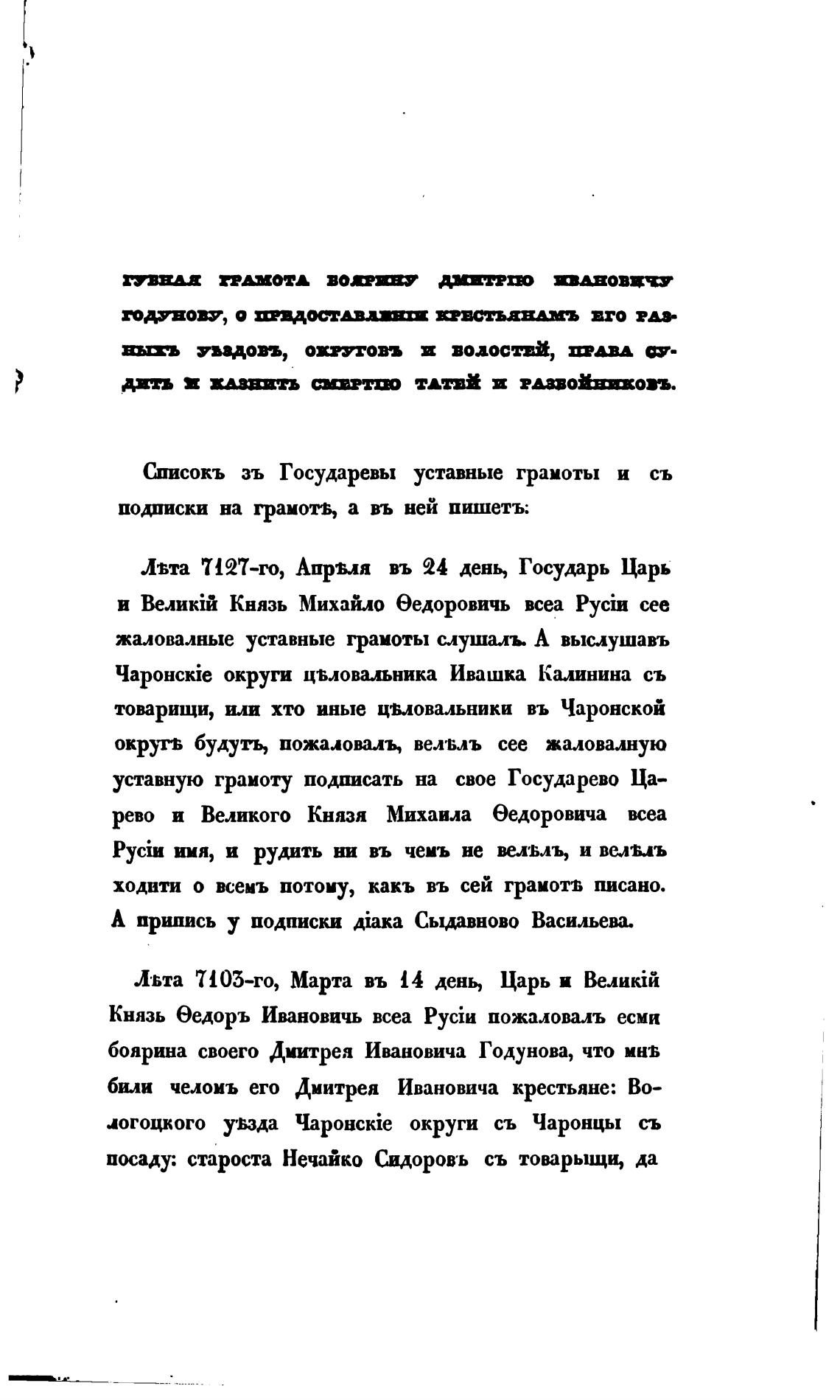 Сшисокъ зъ Государевы уставные грамоты и съ