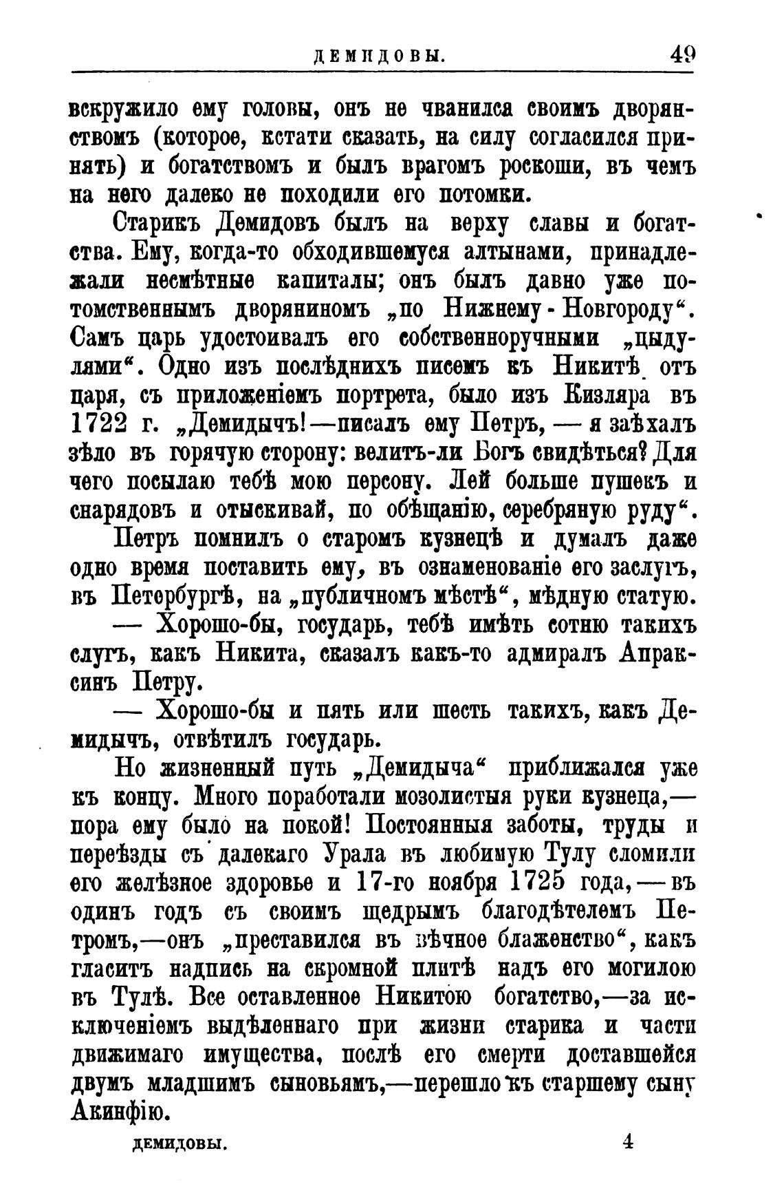 1722 г. „Демидычъ!—писалъ ему Петръ,