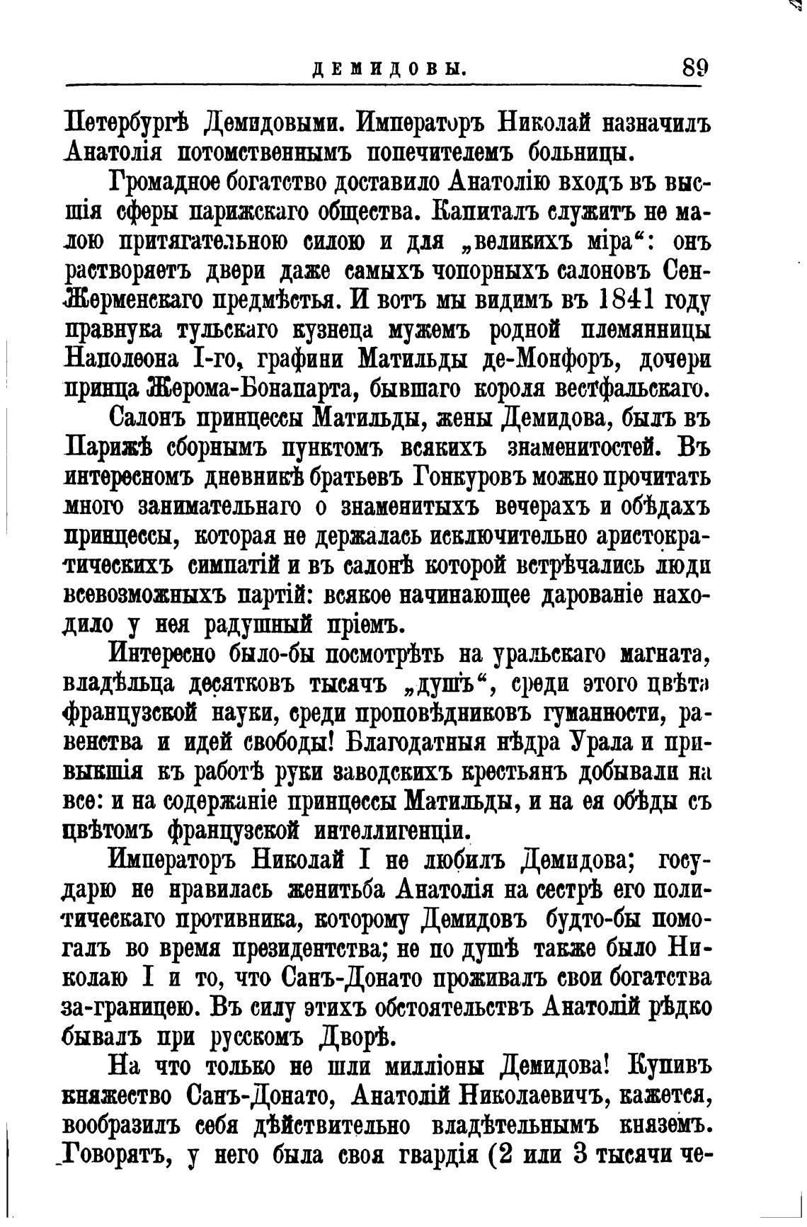 Императоръ Николай I не дюбилъ Демидова; госу-