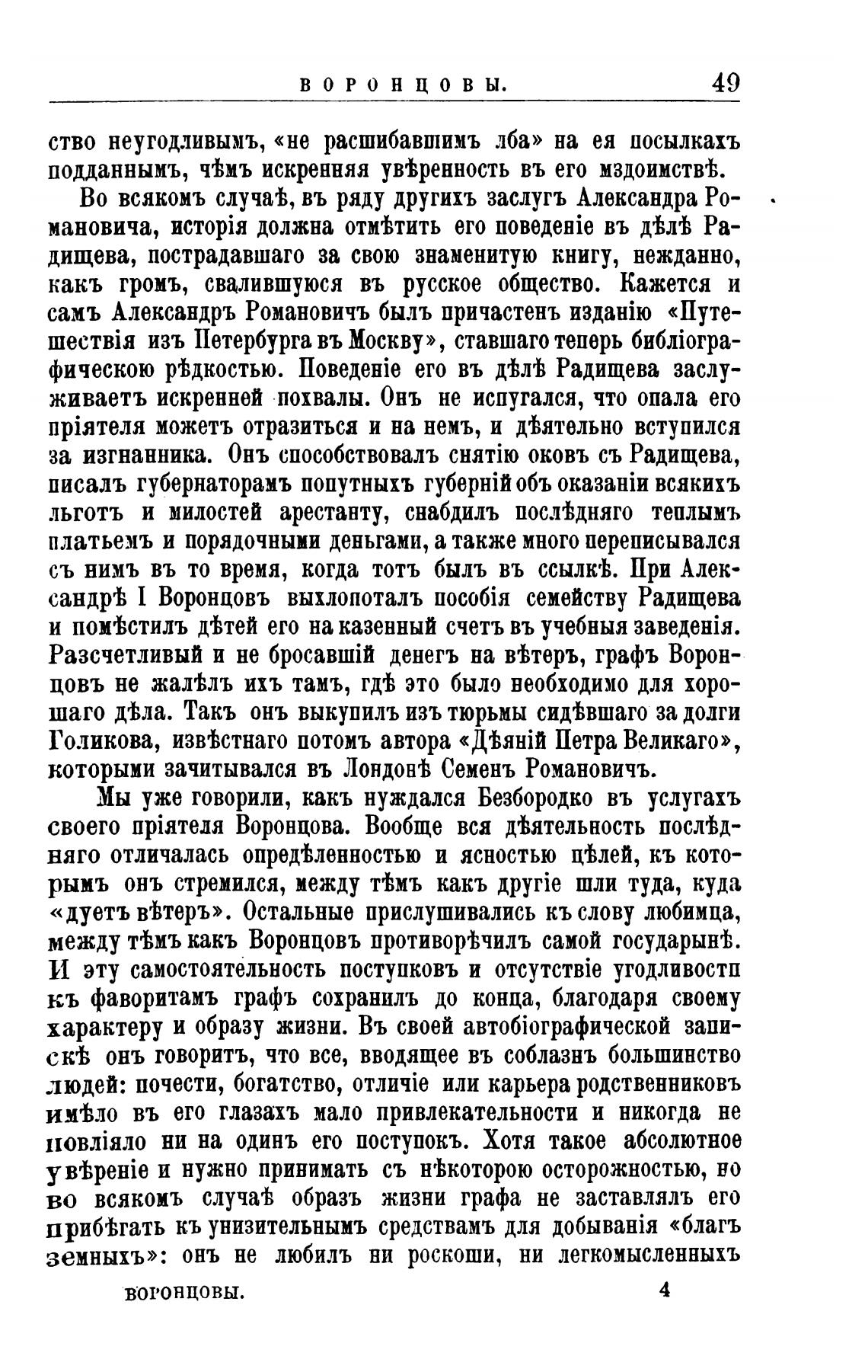 сандр'Ь Воронцовъ выхлопоталъ семейству Радищева