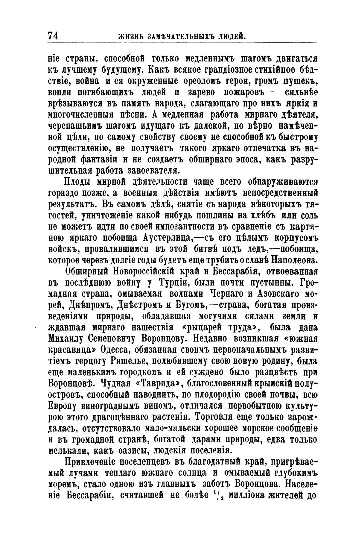 моремъ, стало одною изъ главныхъ заботь Воронцова. Населе-