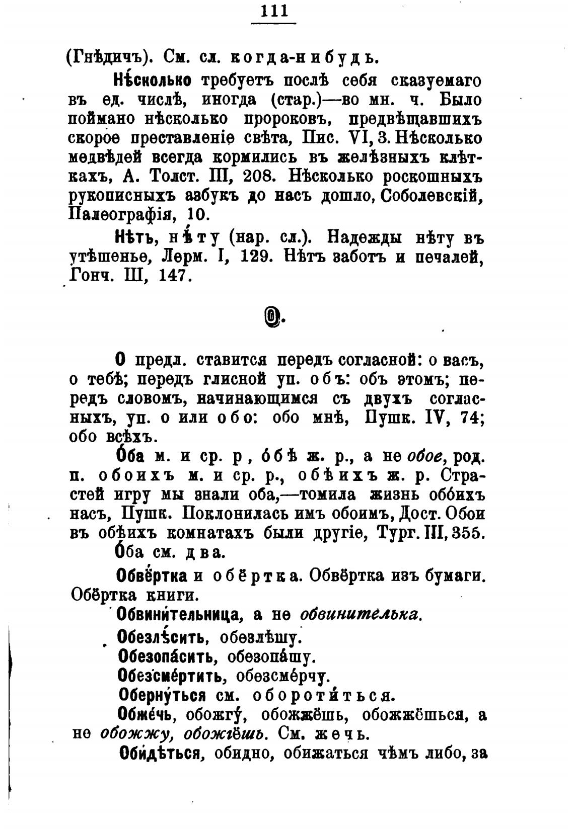ныхъ, уп. о или обо: обо мнђ, Пушк. IV, 74;