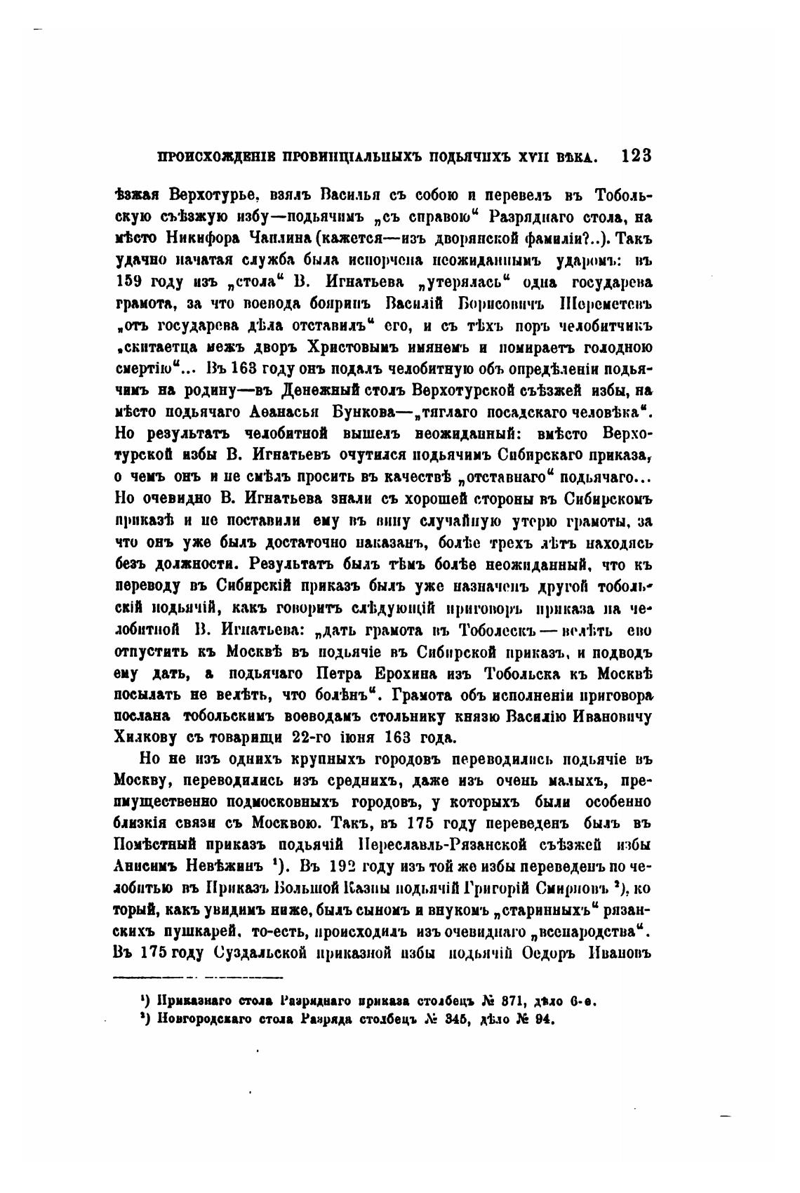 турскоп избы В. Игнатьевъ очутился подьячииъ Сибирскаго приказа,