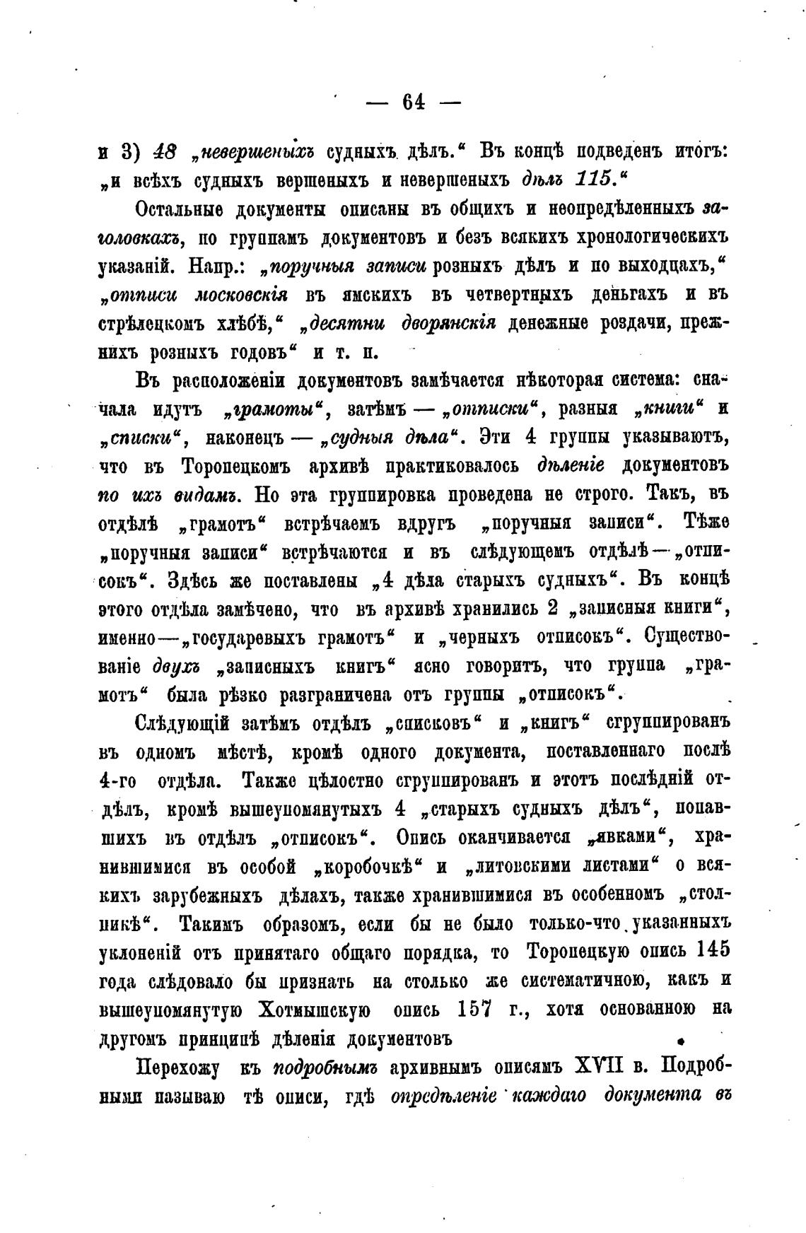 Перехожу въ подробным архивнымъ описямъ ХУП в. Подроб-
