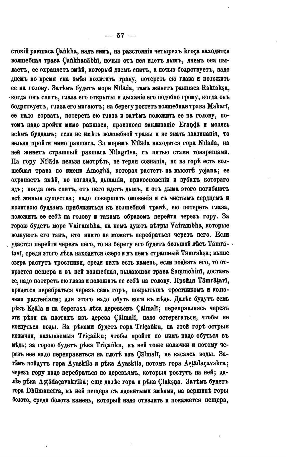 ее на голову. Зат%мъ будеть море Nilida, тамъ живетъ ракшаса Raktaksa,